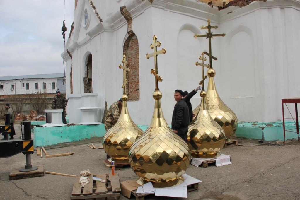 Напомним, что восстановление исторического облика старейшего каменного здания Усть-Каменогорска – Свято-Троицкого храма, началось в апреле 2013 года, и за прошедший год были заново отстроены некогда разрушенные большевиками колокольня и алтарная апсида. Восстановлена так же внутренняя планировка храма. В ближайшее время ожидается прибытие в Усть-Каменогорск и нового набора колоколов, которые займут достойное место на колокольне восставшего из руин храма в честь Святой и Живоначальной Троицы.