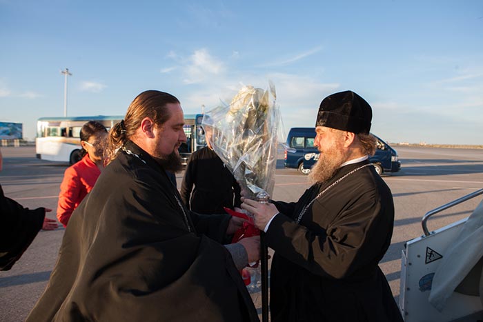 По прибытии в аэропорт митрополит Александр дал интервью местным средствам массовой информации.