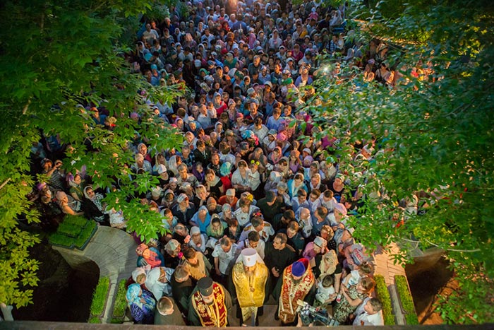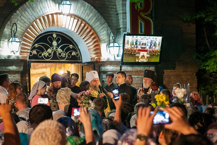 Глава Митрополичьего округа приветствовал многочисленных паломников пасхальным возгласом «Христос воскресе!» и обратился к собравшимся с проповедью.