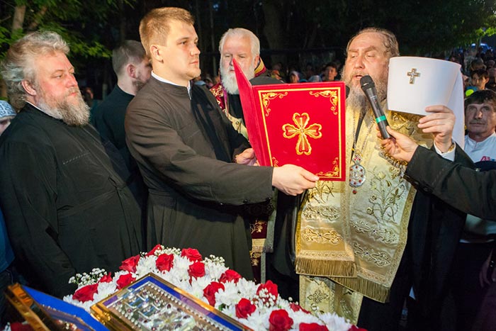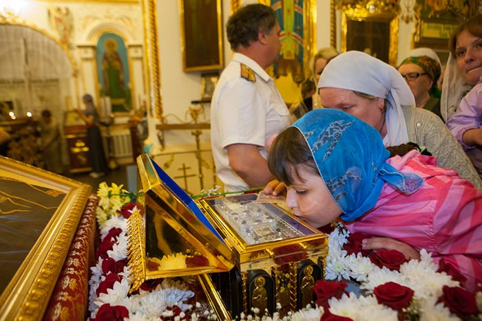Ковчег с Честным Поясом был перевезен для молитвенного поклонения в Казанский храм. Митрополит Александр, архиепископ Елевферий и епископ Амфилохий, в сослужении епархиального духовенства совершили молебен Царице Небесной. Из-за большого стечения народа молебное пение было отслужено на площади перед храмом.