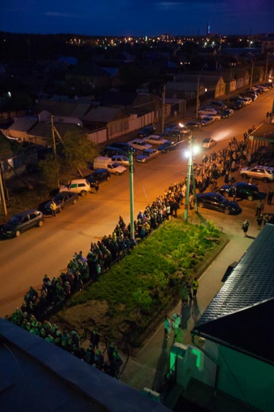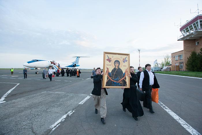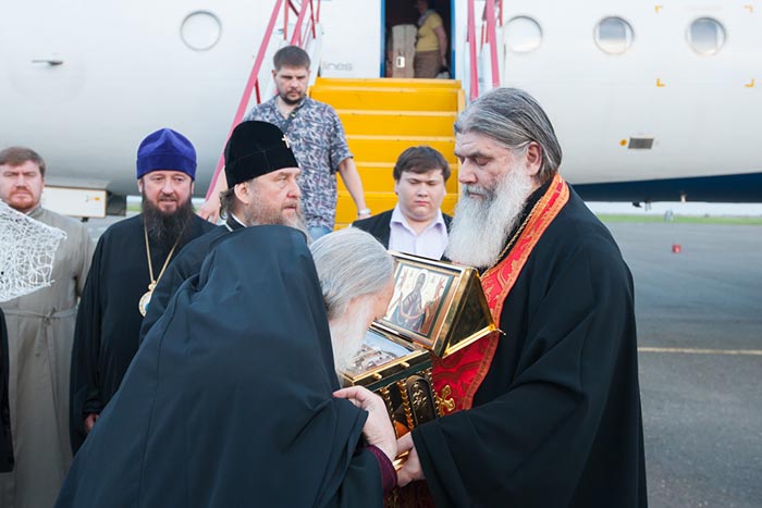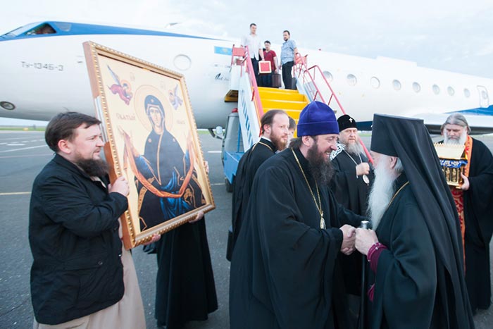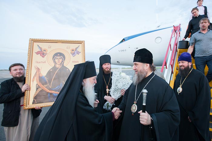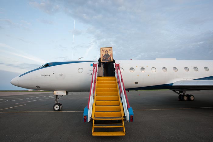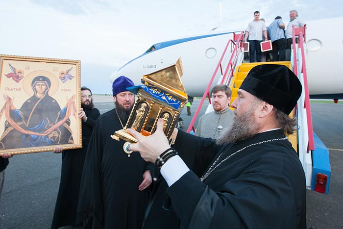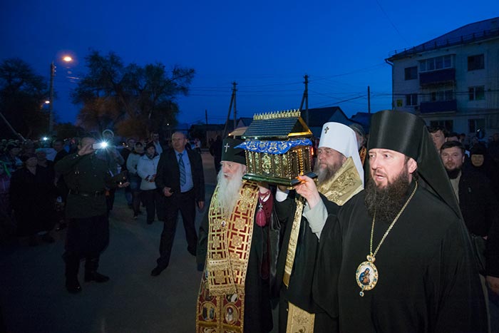 Ковчег с Поясом Приснодевы из аэропорта был привезен в Михаило-Архангельский собор города Уральска. Несмотря на поздний час встретить святыню собрались тысячи верующих.