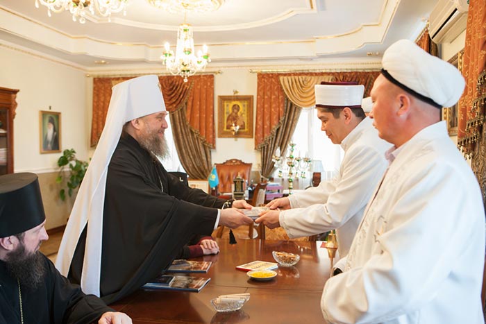 Митрополит Александр рассказал имамам о деятельности Православной Церкви Казахстана, своем общении с Председателем Духовного Управления мусульман Казахстана Верховным муфтием Ержаном кажы Маямеровым, подготовке будущих священнослужителей в Алма-Атинской Православной Духовной семинарии, осуществлении благотворительных проектов, а также о принесении в епархии Митрополичьего округа Пояса Пресвятой Богородицы.