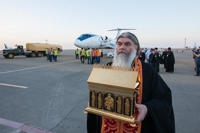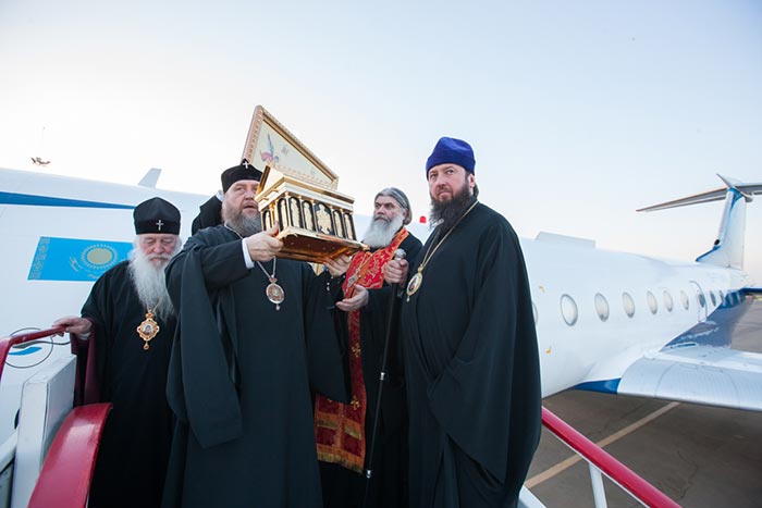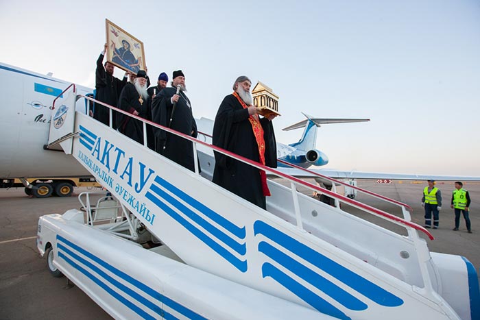 Вечером самолет со святыней на борту покинул Уральск и приземлился в аэропорту города Актау. Ковчег с Поясом Царицы Небесной был принесен в Благовещенский храм Каспийской столицы Казахстана.
