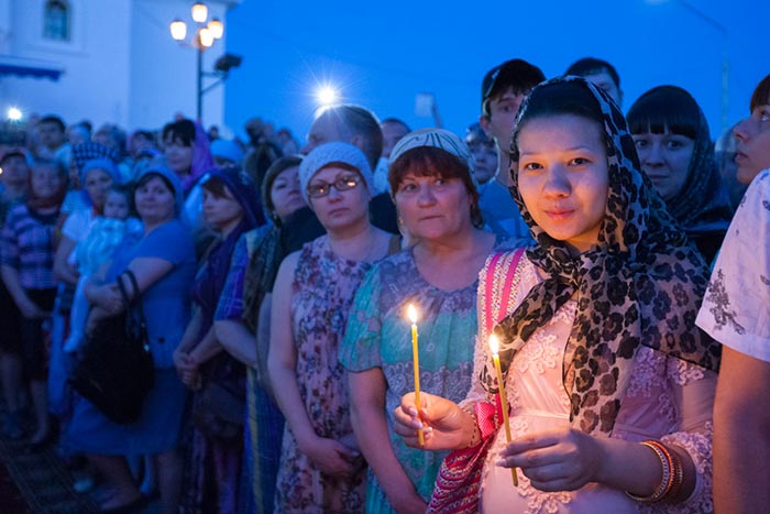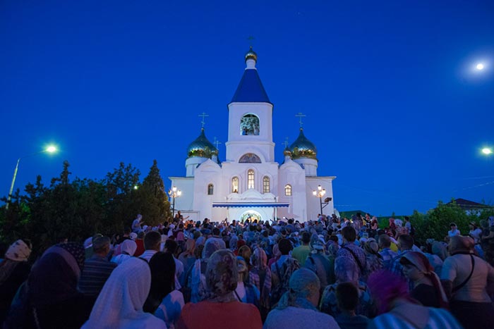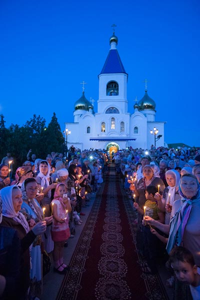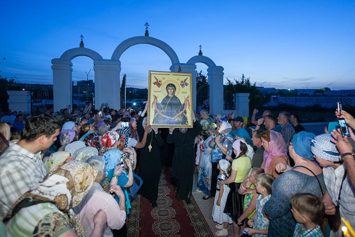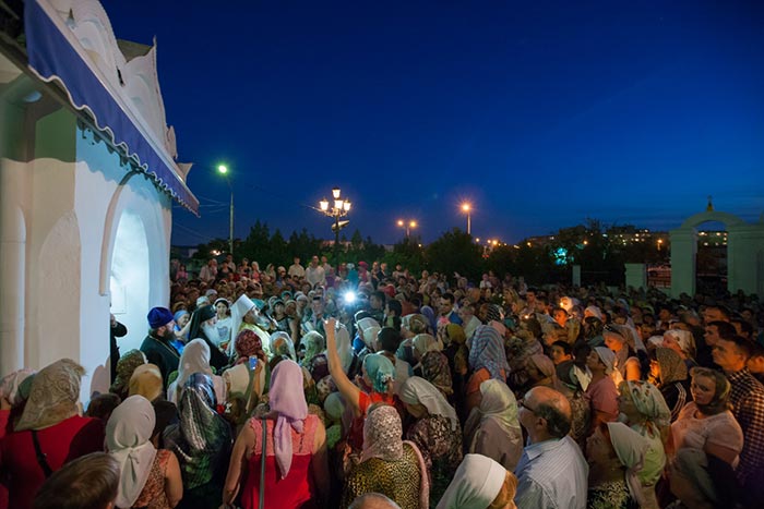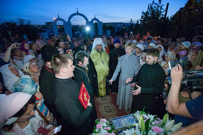 Торжественным архиерейским молебном, участниками которого стали несколько сотен верующих, началось поклонение святыне.