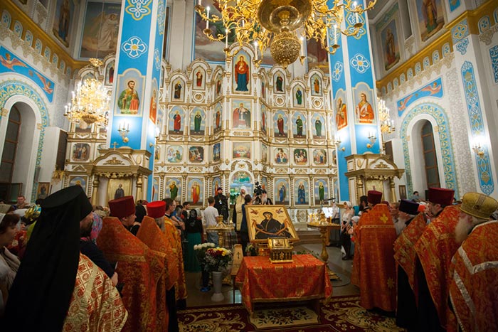 По прибытии в Актюбинск святыня была перевезена в собор во имя священноисповедника Николая, митрополита Алма-Атинского, - первый храм, возведенный на земле Казахстана, который посвящен святому иерарху Семиречья и страдальцу за веру ХХ столетия.