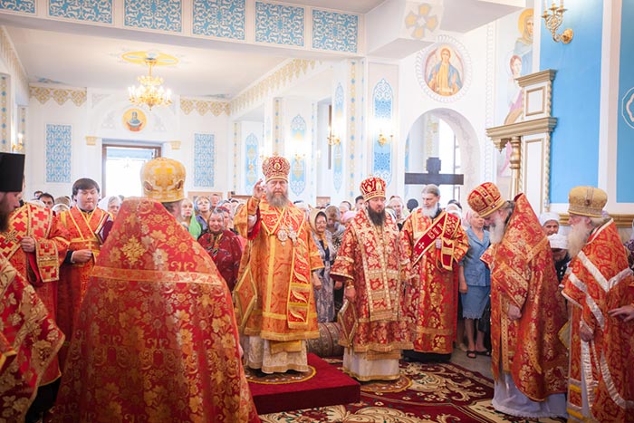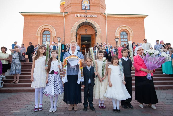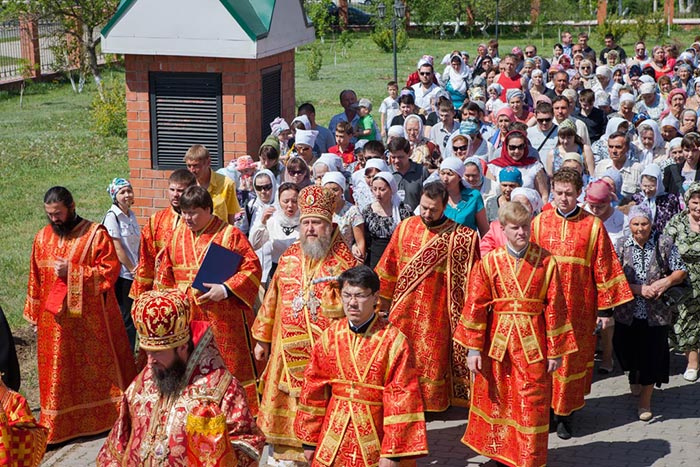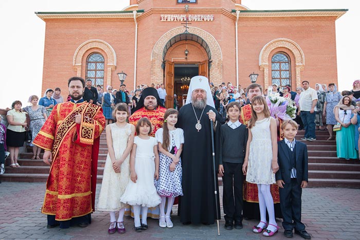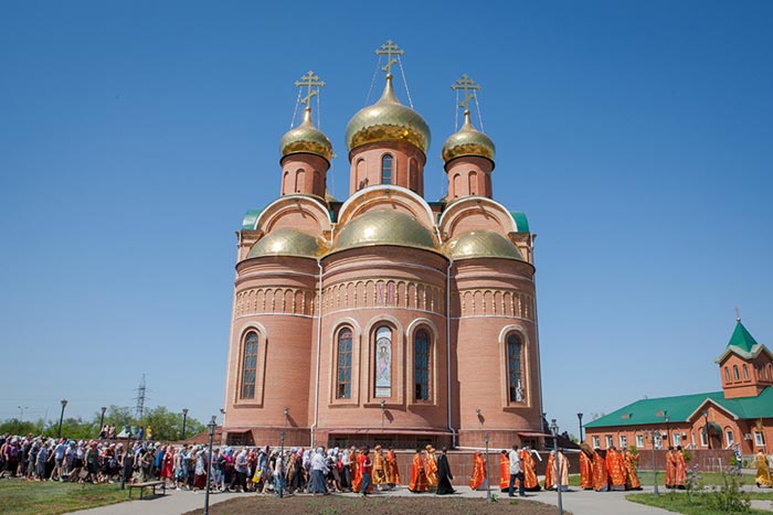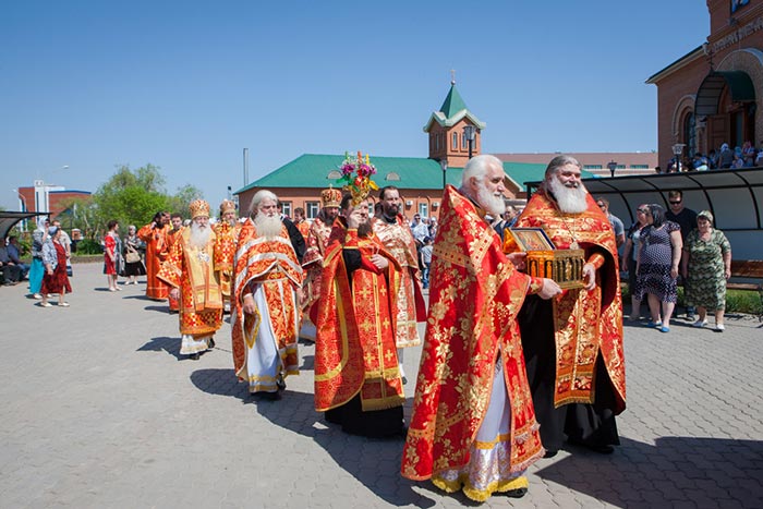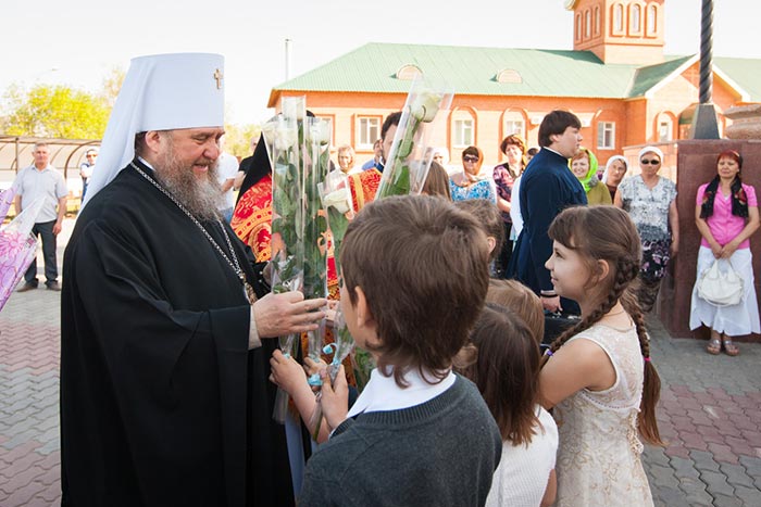 Литургия завершилась проповедью митрополита Александра, исполнением стихир Святой Пасхи и крестным ходом вокруг храма.