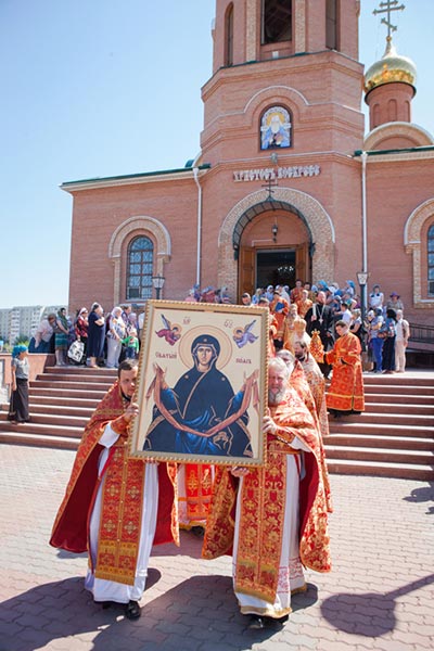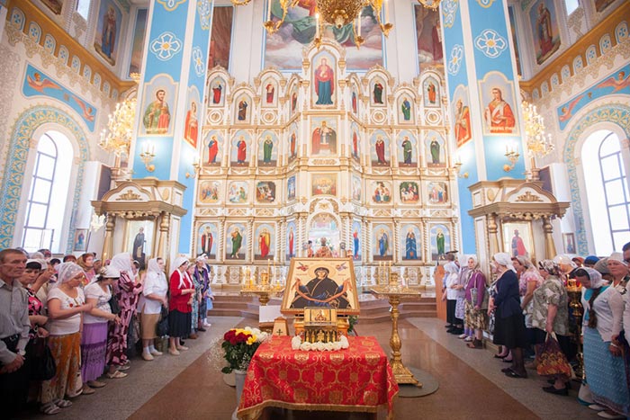 На протяжение всей ночи перед ковчегом с Поясом Пресвятой Богородицы, пребывающем в Никольском соборе, духовенством города служились молебны; непрерывным потоком к святыне шли верующие. За Литургией храм, вмещающий около двух тысяч человек, был переполнен молящимися – прихожанами и паломниками из населенных пунктов Актюбинской области.