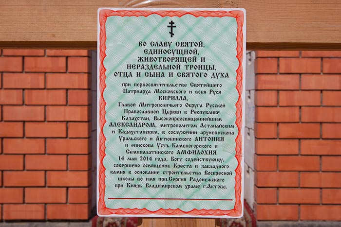 В рамках празднования 700-летия со дня рождения преподобного Сергия Радонежского, при храме в честь равноапостольного Великого князя Владимира Актюбинска Глава Митрополичьего округа благословил начало строительства здания воскресной школы, носящей имя Игумена земли Русской.