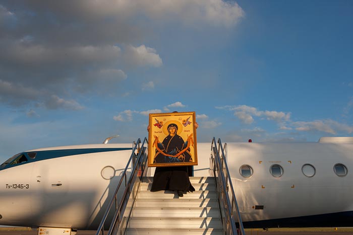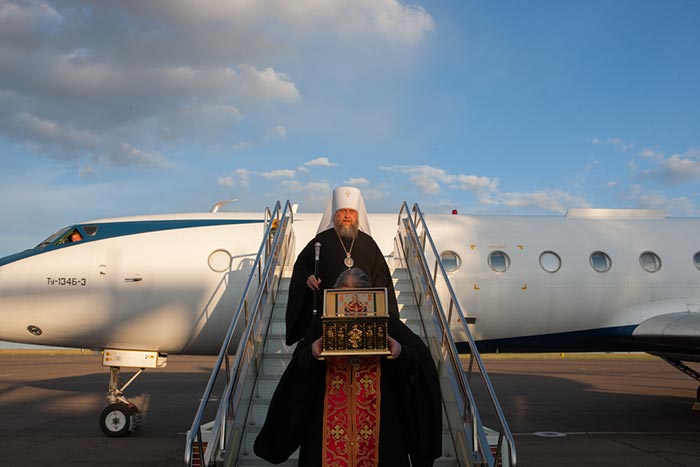 Самолетом Пояс Богородицы был доставлен в Павлодар. В аэропорту ковчег со святыней встречали: епископ Павлодарский и Экибастузский Варнава с духовенством епархии; заместитель акима Павлодарской области А.А. Орсариев и руководитель управления по делам религий Павлодарской области Е.М. Рахимжанов.