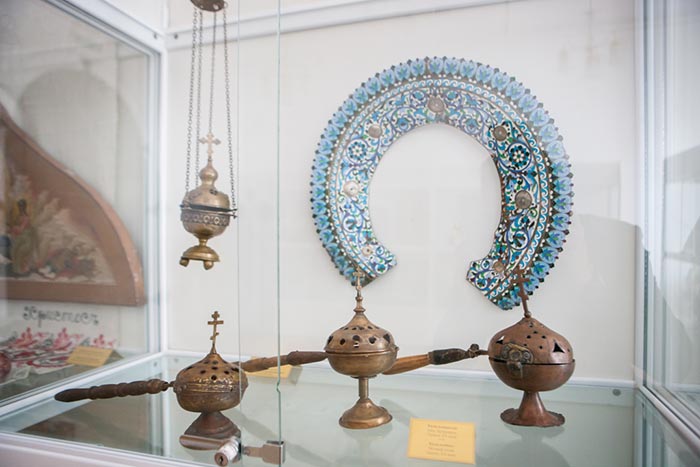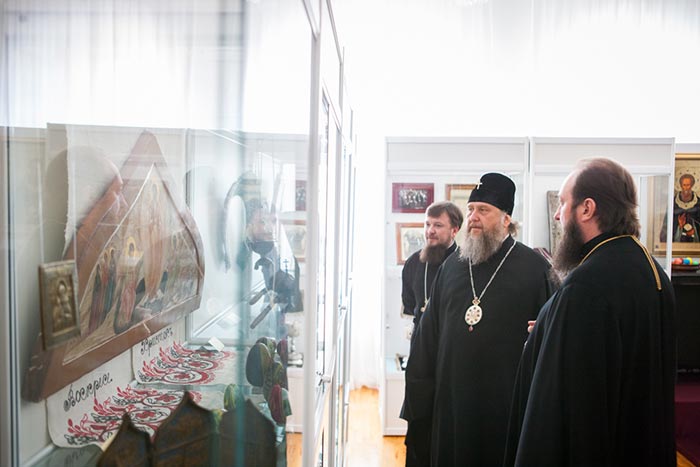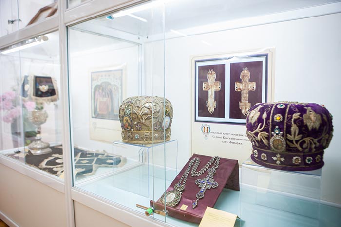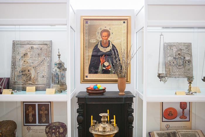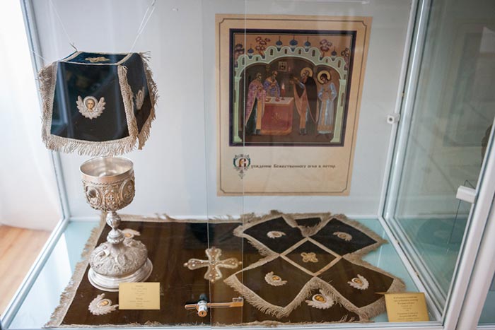 На выставке представлено свыше 180 предметов из фонда музея-заповедника, церковного музея Усть-Каменогорской епархии и храмовых ризниц. Это иконы, рукописные книги, церковная утварь, произведения декоративно-прикладного искусства, фотографии и т.д. Среди экспонатов – части богослужебных облачений, принадлежавших святому праведному Иоанну, протоиерею Кронштадтскому, и старцу-митрополиту Иосифу (Чернову).