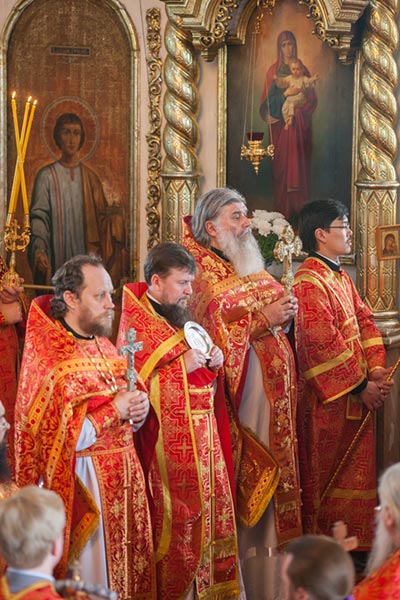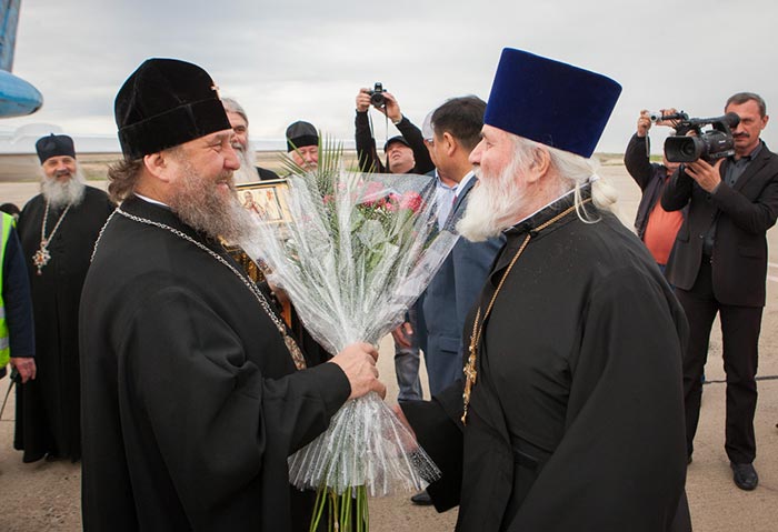 Его Высокопреосвященству сослужили: епископ Петропавловский и Булаевский Гурий, епископ Павлодарский и Экибастузский Варнава, епископ Усть-Каменогорский и Семипалатинский Амфилохий; благочинный Семипалатинского церковного округа протоиерей Феодор Проскурин, руководитель Издательского отдела Казахстанского Митрополичьего округа архимандрит Иосиф (Еременко), настоятель храма в честь иконы Божией матери «Всех скорбящих радость» протоиерей Евгений Воробьев, руководитель Информационного отдела Митрополичьего округа протоиерей Евгений Иванов, руководитель службы протокола митрополита протодиакон Роман Головин, протодиакон Свято-Никольского собора Алма-Аты Георгий Засыпкин, диакона Вознесенского алма-атинского кафедрального собора Владимир Сыровацкий и Димитрий Савченко; духовенство Усть-Каменогорской епархии.