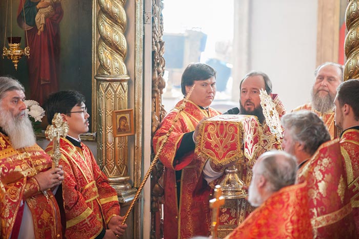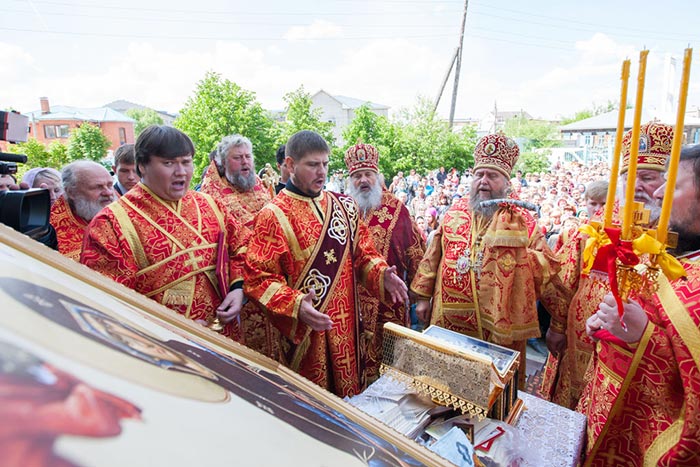 Поскольку собор не вместил всех желающих поклониться святыне, ковчег с четным Поясом был установлен на паперти храма, где и оставался в течение всего дня для молитвенного поклонения верующих.