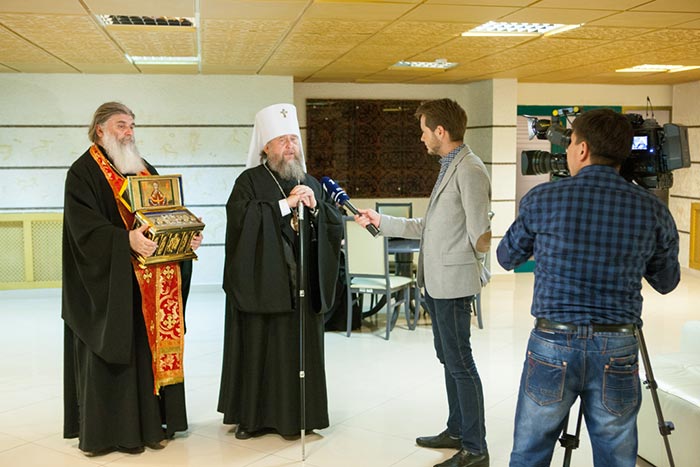 По прилете митрополит Александр дал интервью корреспонденту Первому каналу "Евразия".