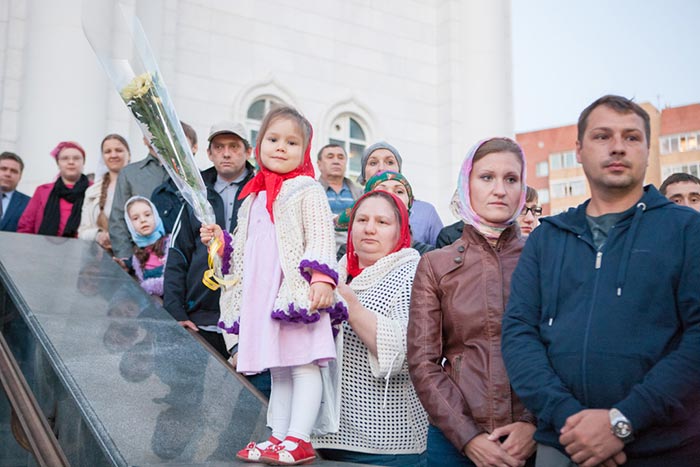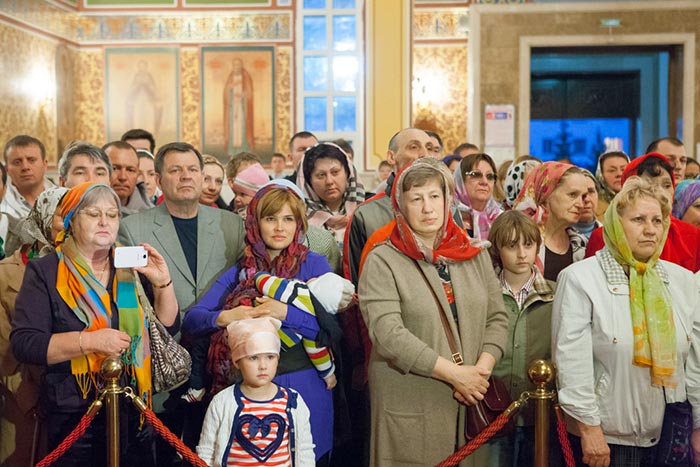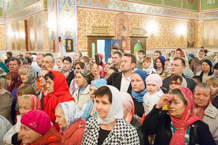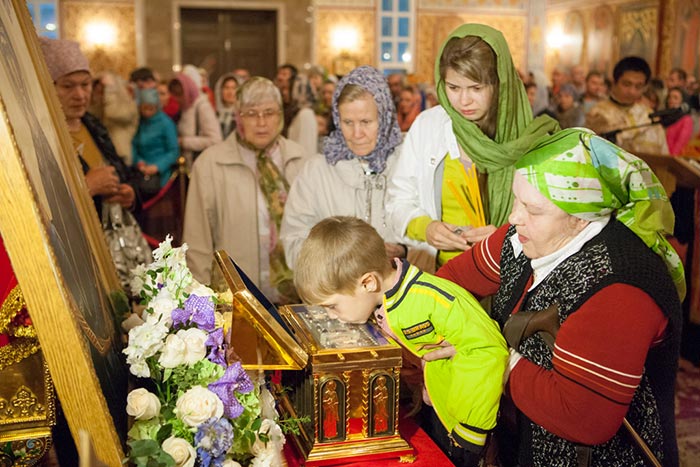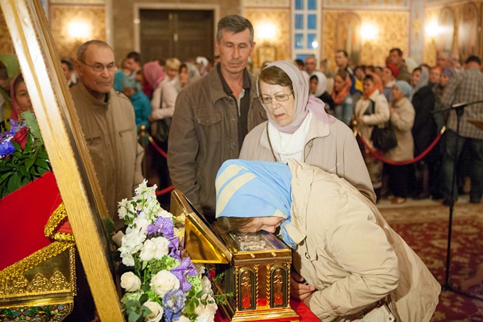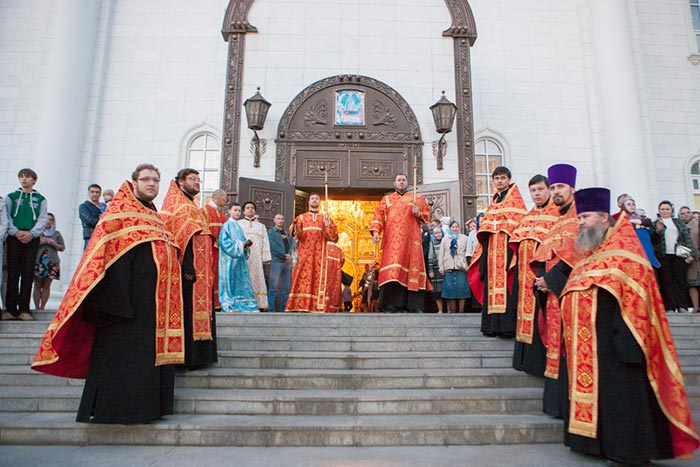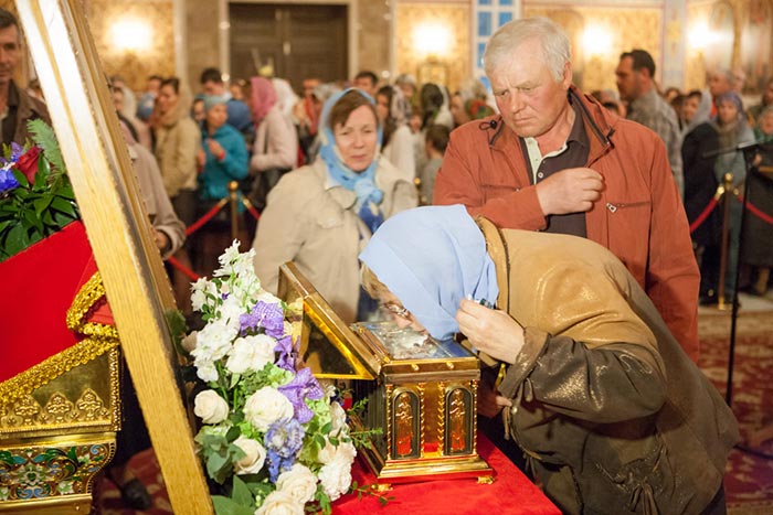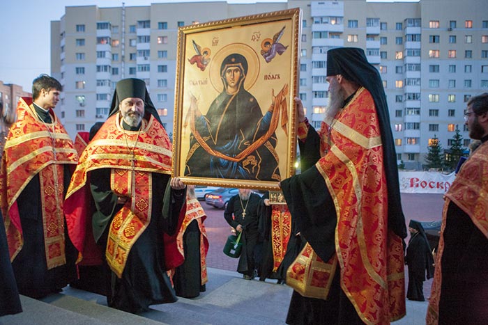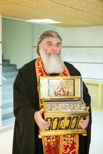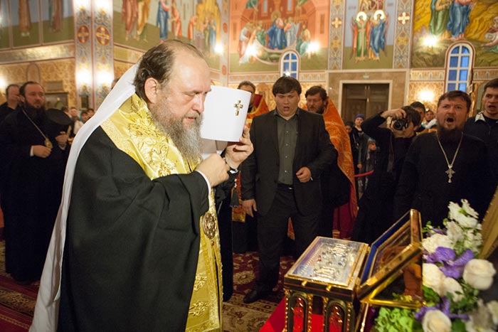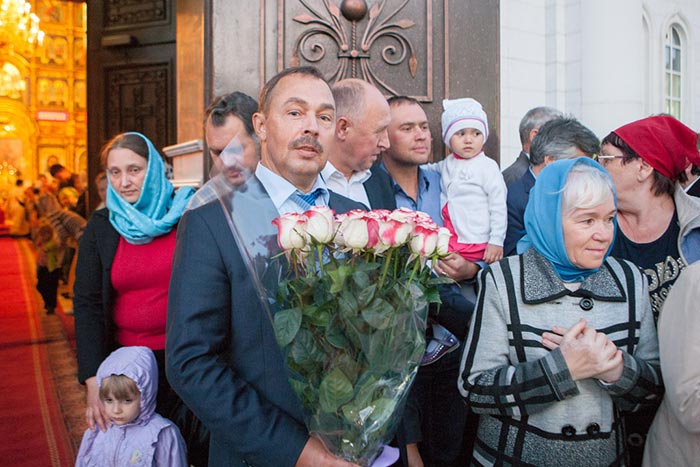 Под пение тропаря Положению Пояса Богородицы ковчег со святыней был внесен под своды Успенского кафедрального собора столицы. После встречи святыни состоялся молебен.