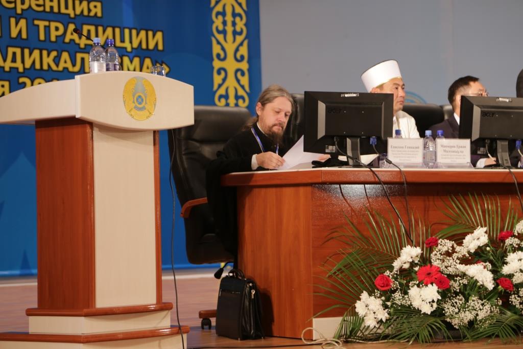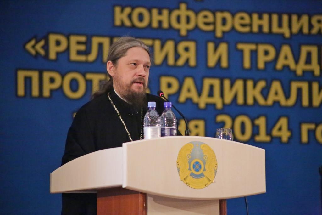 В своем выступлении Владыка Геннадий дал характеристику религиозному терроризму, а также националистическому и политическому экстремизму, имеющему религиозное измерение. Епископ Геннадий рассказал о преследованиях христиан в различных странах мира и о миротворческой деятельности Православной Церкви, призвал бороться с проявлениями религиозного экстремизма в сфере богословия и предложил создать единый фронт противостояния этому «вызову XXI века» с привлечением верующих традиционных и ряда нетрадиционных для Казахстана религий.