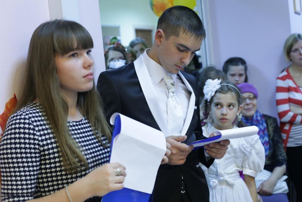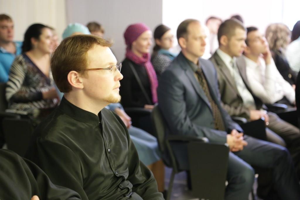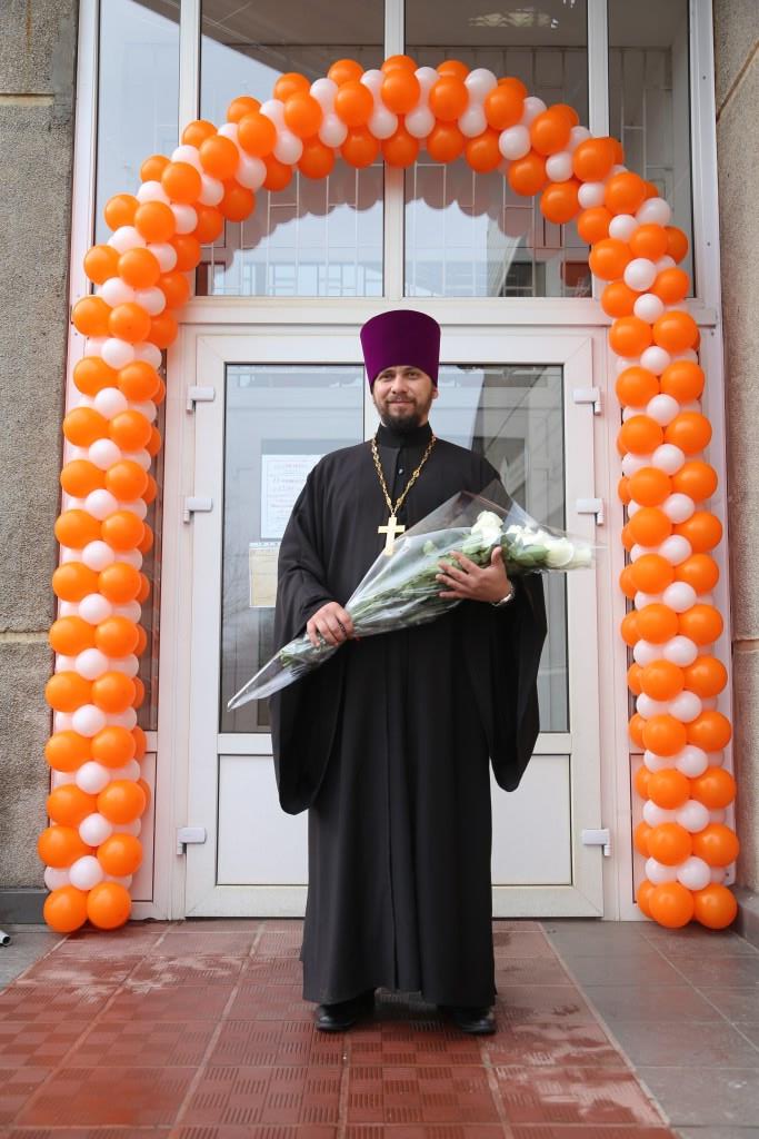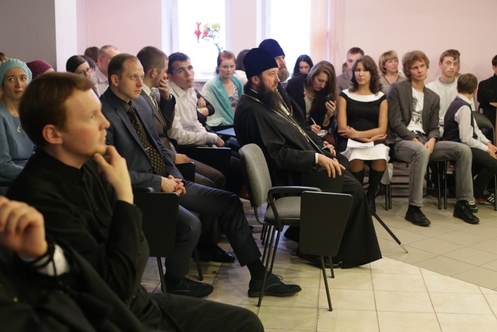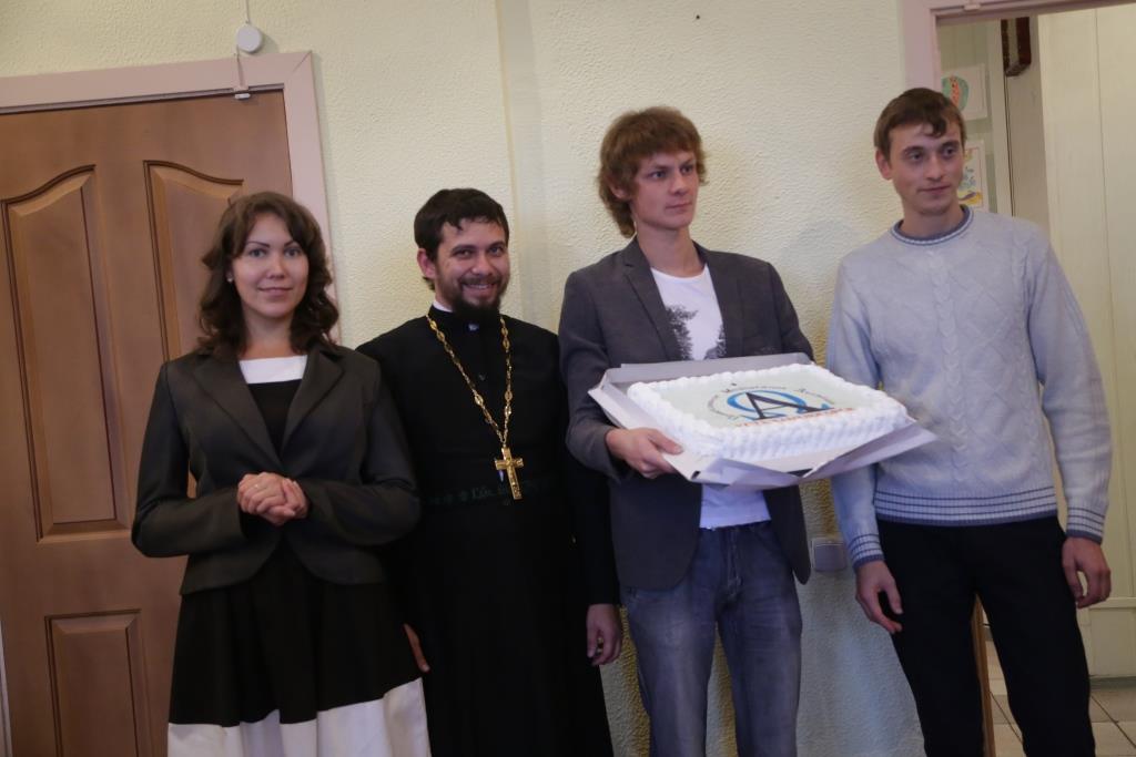 Актовый зал школы с трудом вместил всех гостей и участников торжества: членов Православных молодежных клубов епархии, воспитанников воскресных школ города и области, студентов городского филиала Московского Государственного университета Экономики, Статистики и Информатики.