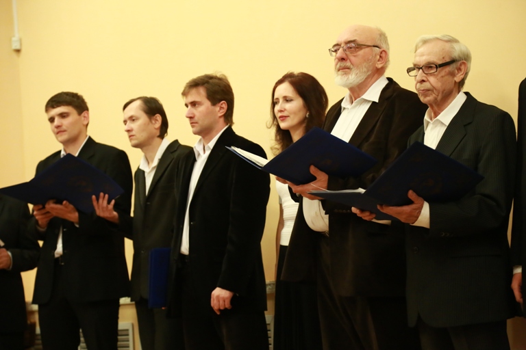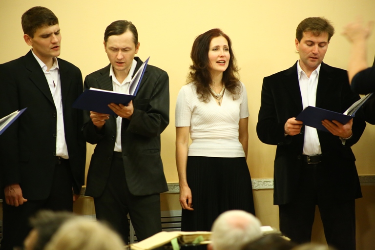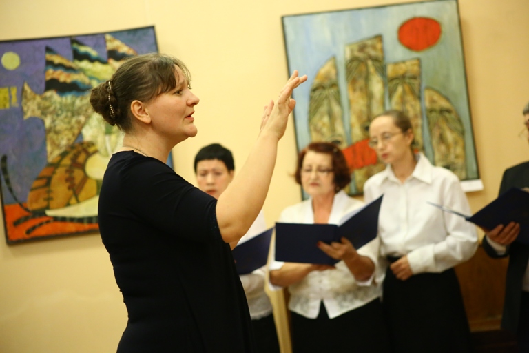 Центральная часть концерта была посвящена рассказу о жизни и творчестве М.В. Емельянова (годы жизни – 1901-1972), который в течение 20 лет, с 1952 по 1972 год, нёс послушание регента Покровского храма Усть-Каменогорска. Некоторые исполненные в ходе вечера песнопения (Стихиры Пасхи, Великие прокимны) – это партитуры в обработке М.В. Емельянова.