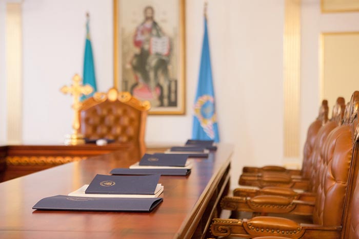 После заседания Синода состоялась встреча Главы Казахстанского Митрополичьего округа и казахстанских архипастырей с председателем Комитета по делам религий Министерства культуры и спорта Республики Казахстан Г.Н. Шойкиным. В ходе общения стороны обменялись мнениями по широкому кругу вопросов, связанных с жизнью Православной Церкви Казахстана, и обсудили государственно-церковные отношения в Республике.