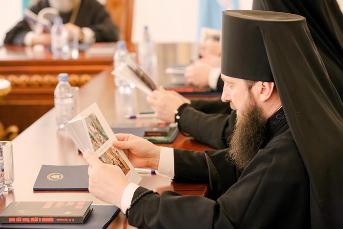 С докладами о духовно-просветительской деятельности в епархиях выступили епископ Усть-Каменогорский и Семипалатинский Амфилохий и епископ Петропавловский и Булаевский Владимир.