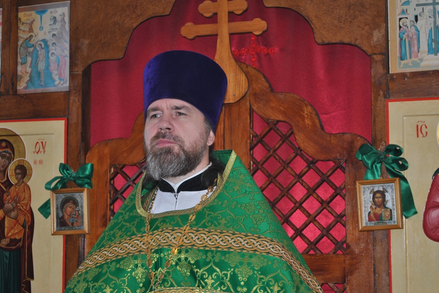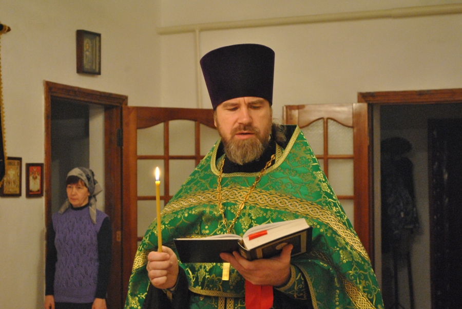 Затем иерей Алексий поздравил прихожан с праздником и огласил Приветственное слово владыки Амфилохия по случаю престольного торжества Александро-Невского храма г. Зайсан.