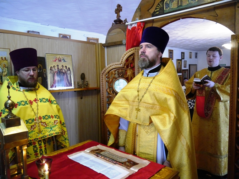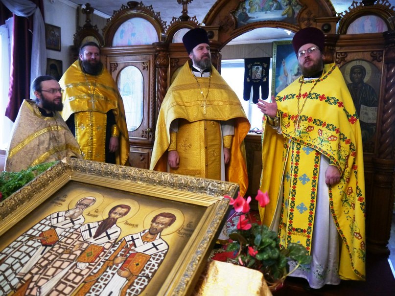 В завершение Литургии было совершено славление святителям Василию Великому, Григорию Богослову и Иоанну Златоусту – пред их честной иконой.