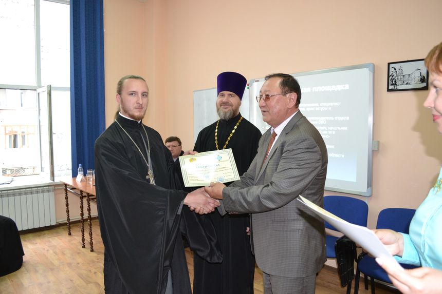 По благословению епископа Усть-Каменогорского и Семипалатинского Амфилохия с приветственным словом к собравшимся обратился благочинный Усть-Каменогорского церковного округа иерей Алексий Анищенко.