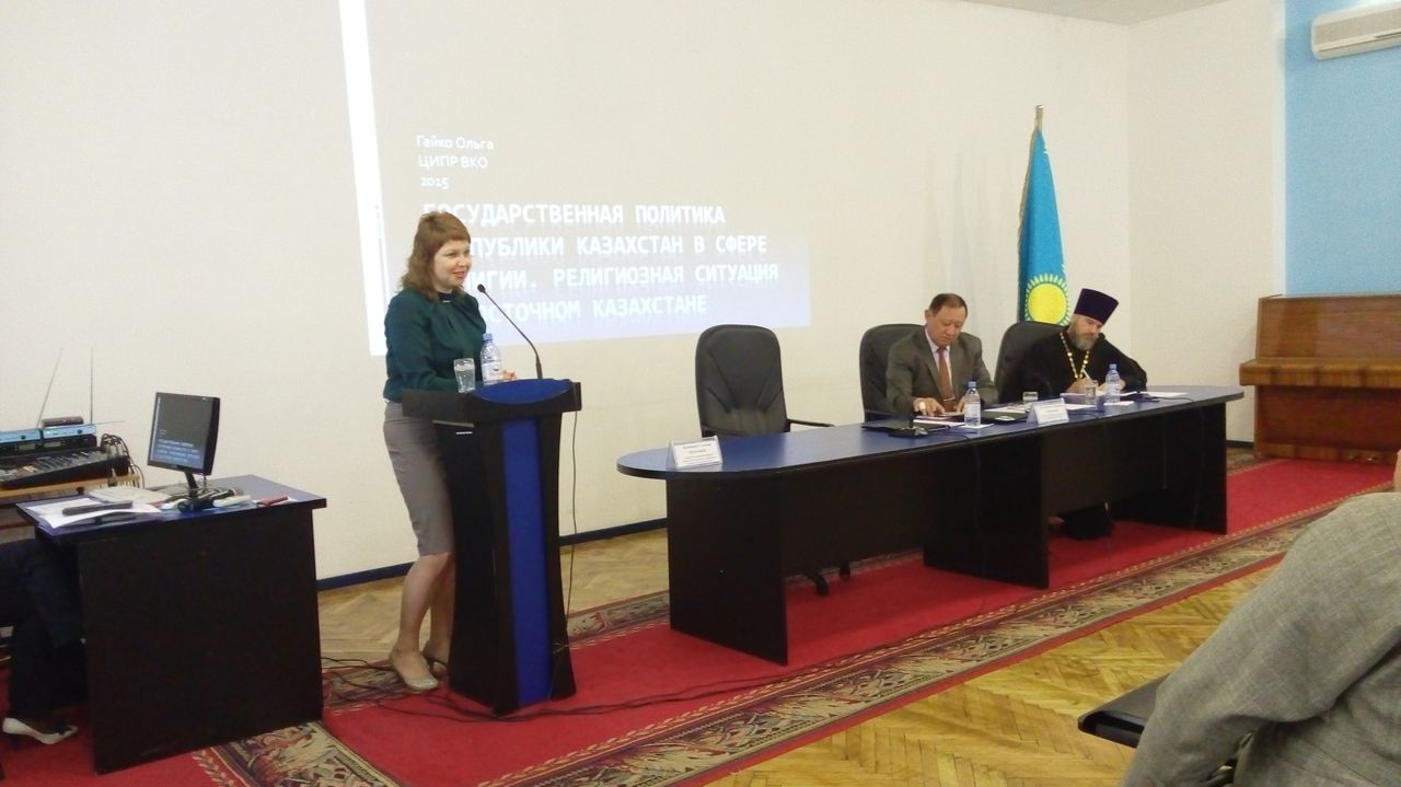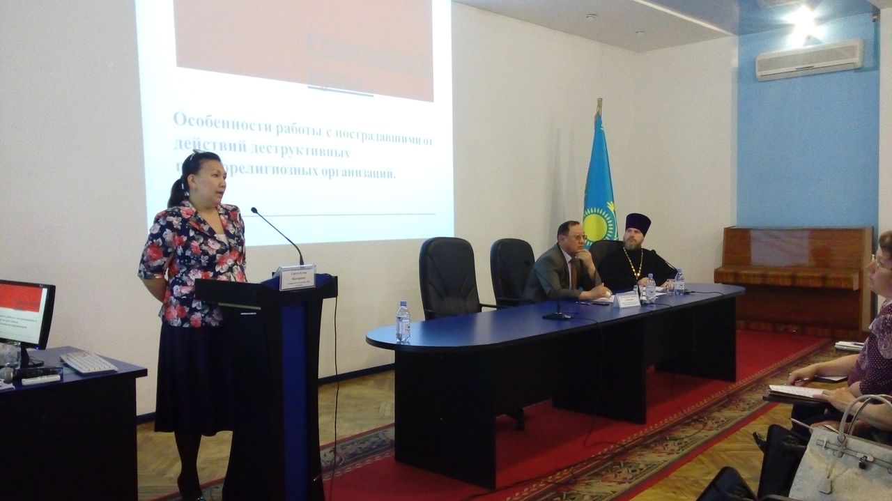 С докладами выступили директор центра исследования проблем религий по Восточно-Казахстанской области И.К. Беркимбаева, заместитель заведующей кафедрой «Социально-гуманитарные дисциплины и Ассамблея народа Казахстана» ВКГТУ им. Д. Серикбаева Г.Н.Жанабаева, заведующая отделом анализа, исследований и мониторинга религиозной ситуации ЦИПР УДР ВКО О.А. Гайко, доцент ВКГТУ им. Д. Серикбаева Э.О. Столярова, доцент ВКГУ им. С. Аманжолова, адвокат А.А. Квашин, руководитель отдела по связям с религиозными объединениями Управления по делам религий Восточно-Казахстанской области А.Е. Турганбаев, старший научный сотрудник НИЦ «Алтайтану» Е.В. Савчук, психолог ЦИПР УДР ВКО Ж.К. Кунафина, заместитель руководителя департамента Агентства по делам государственной службы и противодействию коррупции по ВКО-председатель дисциплинарного совета Т.К. Жумагулов.