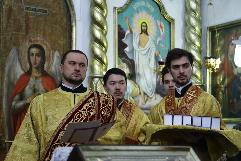 За богослужением молились: благочинный Семипалатинского церковного округа протоиерей Феодор Проскурин, насельницы Знаменской обители, представители семипалатинского казачества, воспитанники воскресной школы, сотрудники Воскресенского храма и многочисленные прихожане.