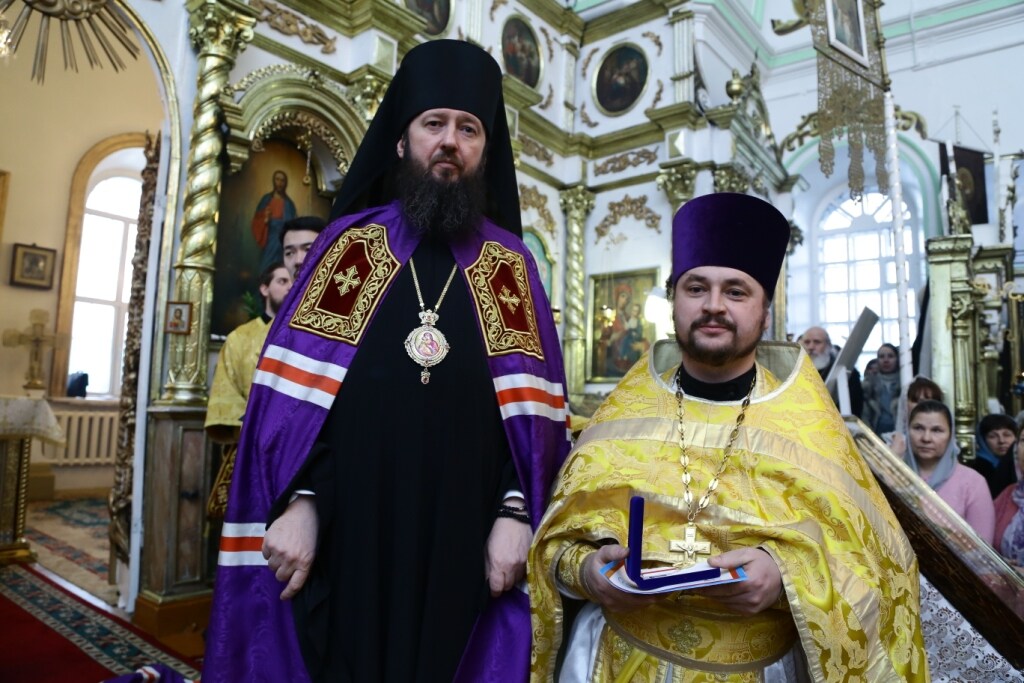 На праздничной Литургии ряд клириков Семипалатинского благочиния и сотрудников Воскресенского кафедрального собора за усердные труды на благо Святого Православия были удостоены высокой награды – медали Митрополичьего Округа Русской Православной Церкви в Республике Казахстан в честь 1000-летия преставления святого равноапостольного князя Владимира.