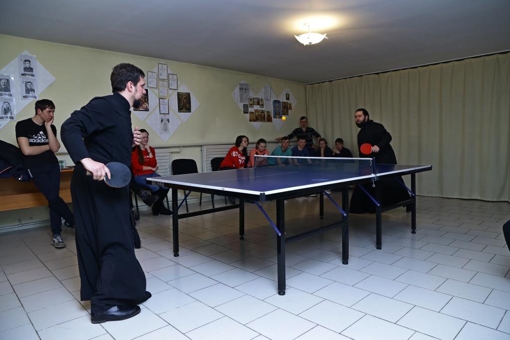 Настольный теннис - игра не только увлекательная, но и увлекающая! Великолепный мастер-класс показали своей молодой пастве отцы-настоятели: иерей Вячеслав Гутов, настоятель Свято-Зиновьевского храма областного центра, и иерей Михаил Арабов, настоятель Свято-Данииловского храма г. Зыряновска.