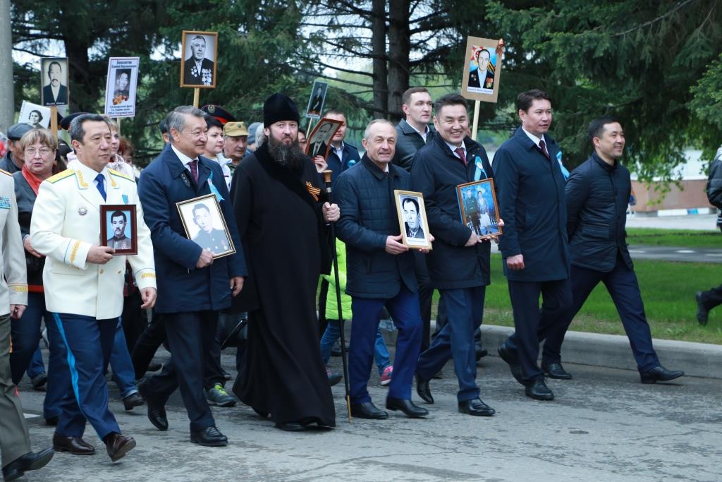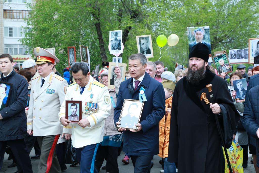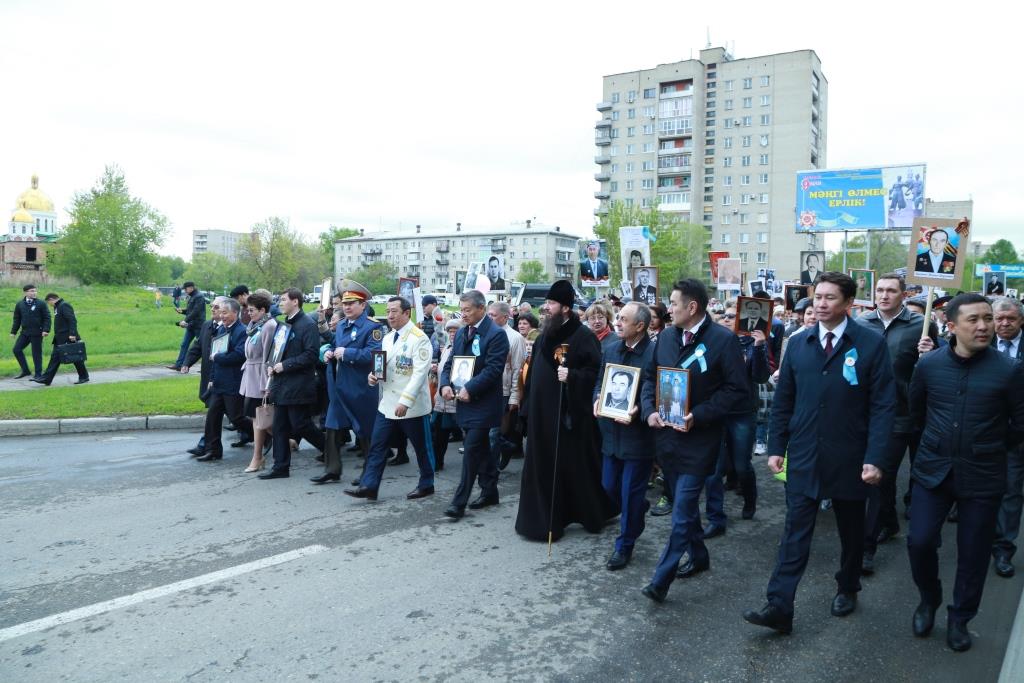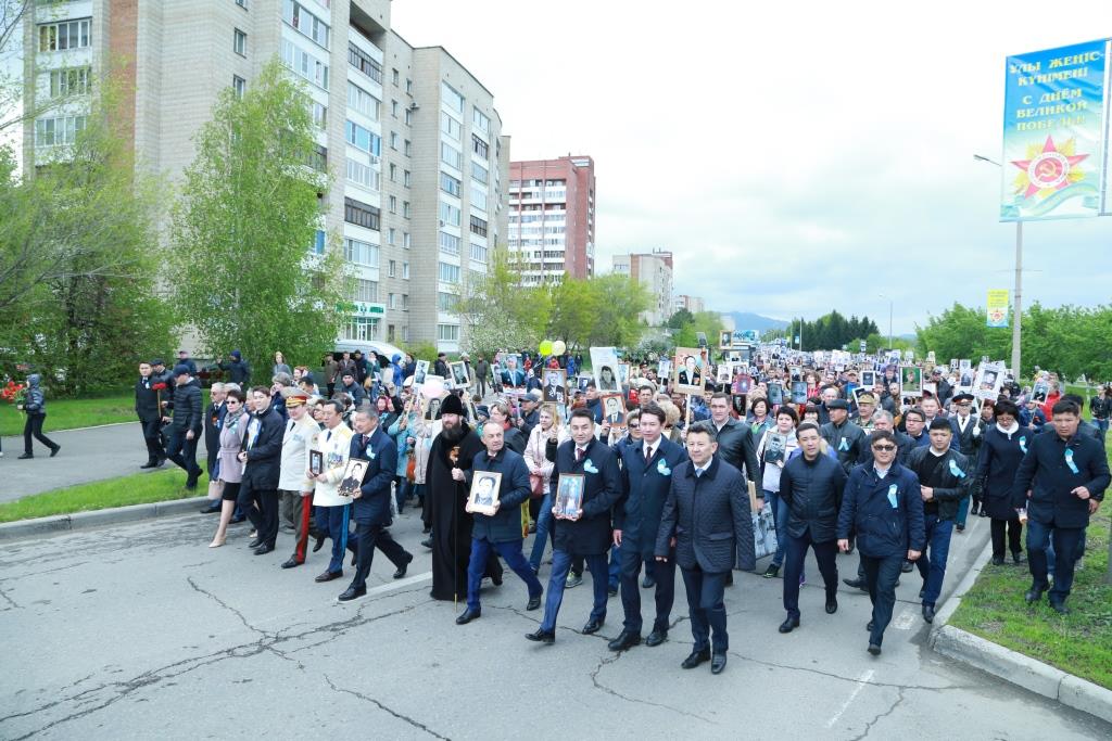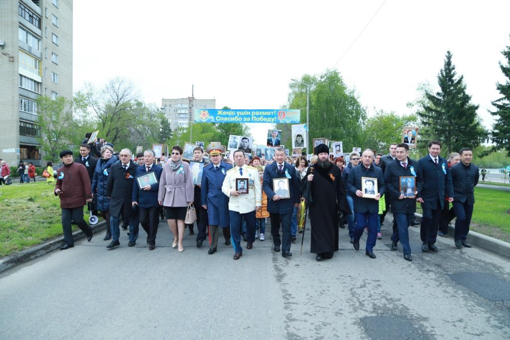 От Речного вокзала к Мемориалу Славы прошли горожане, участвующие в акции «Бессмертный полк». Жители Усть-Каменогорска несли в руках портреты своих дедов, прадедов и родственников, героически сражавшихся в битвах Великой Отечественной войны.