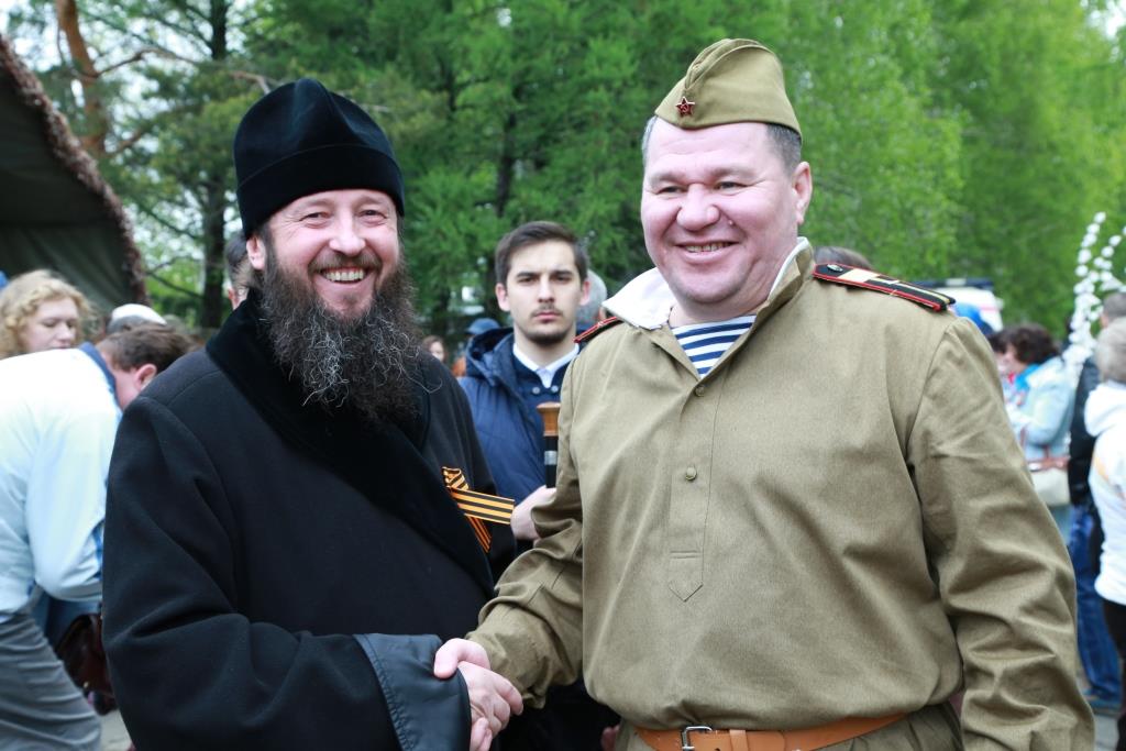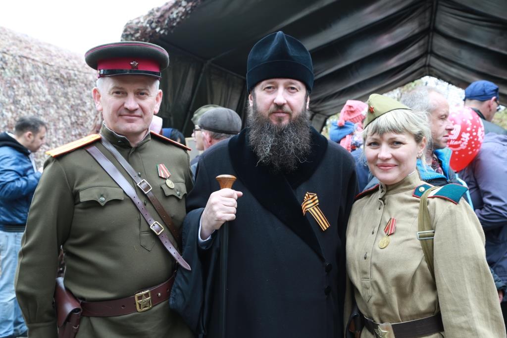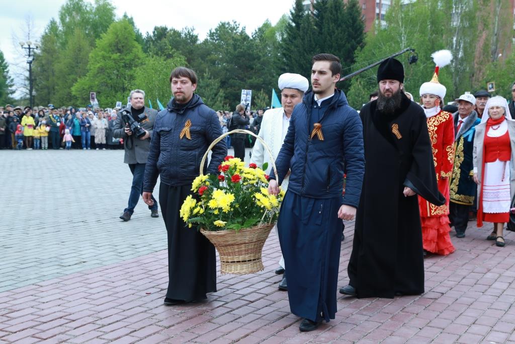 Епископ Амфилохий возложил венок и цветы в память «вождей и воинов, на поле брани жизнь свою положившим, от ран и глада скончавшимся, в пленении и горьких работах невинно умученным и убиенным, и всем Победы ради потрудившимся».
