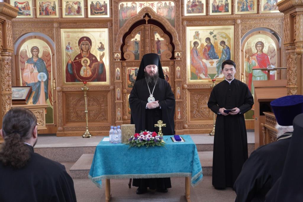 Перед началом собрания состоялось награждение ряда сотрудников епархии Юбилейными медалями в честь 50-летия преставления святого преподобного старца Севастиана Карагандинского. Награды были удостоены руководитель архитектурно-реставрационного отдела епархии Богушевич А.С., главный бухгалтер Свято-Троицкого мужского монастыря Усть-Каменогорска Скороходова Г.Ф., сотрудники епархиального склада Петренко М. и Свадьбина Л.