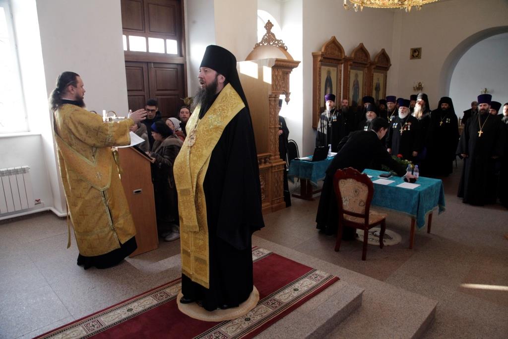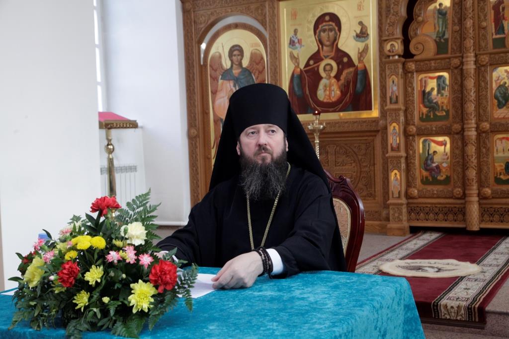Владыка обратил внимание настоятелей на неукоснительное проведение огласительных бесед перед совершением таинств Крещения и Венчания. Было сказано о духовном образовании клириков епархии и дисциплине священно-и церковнослужителей и сотрудников храмов; так же обсуждался вопрос сотрудничества настоятелей с епархиальным складом церковной продукции.