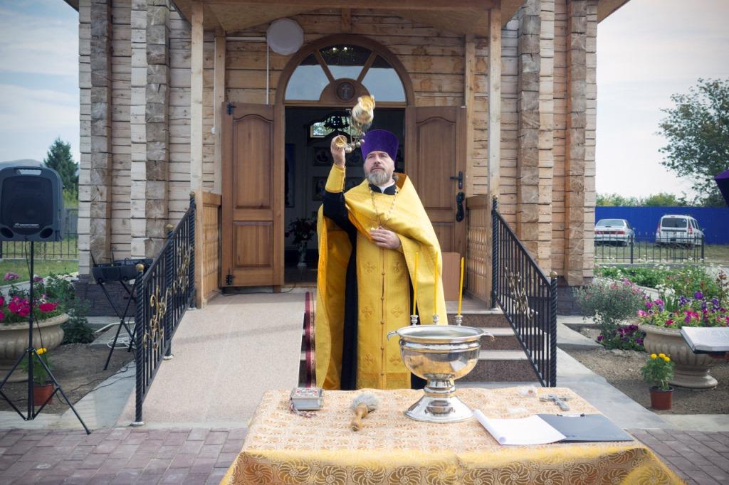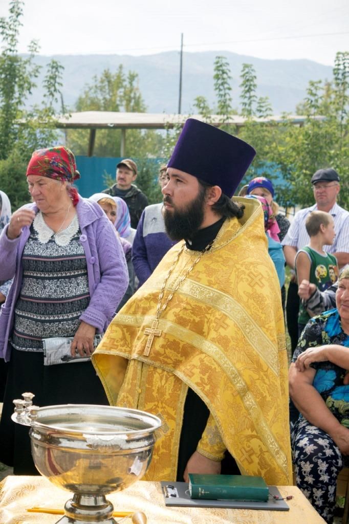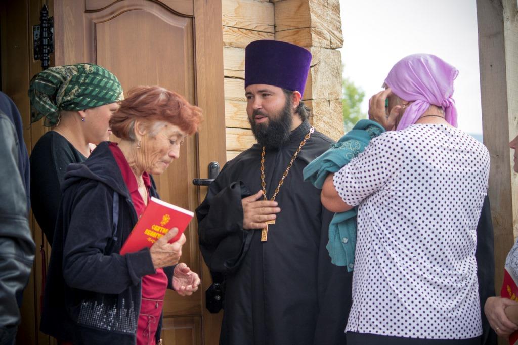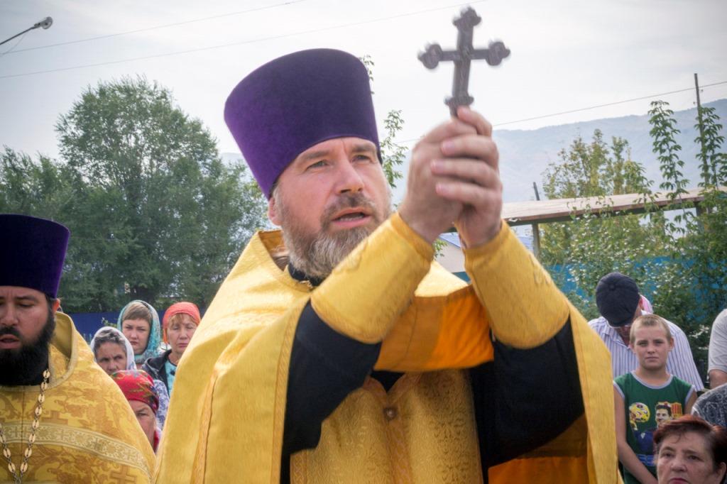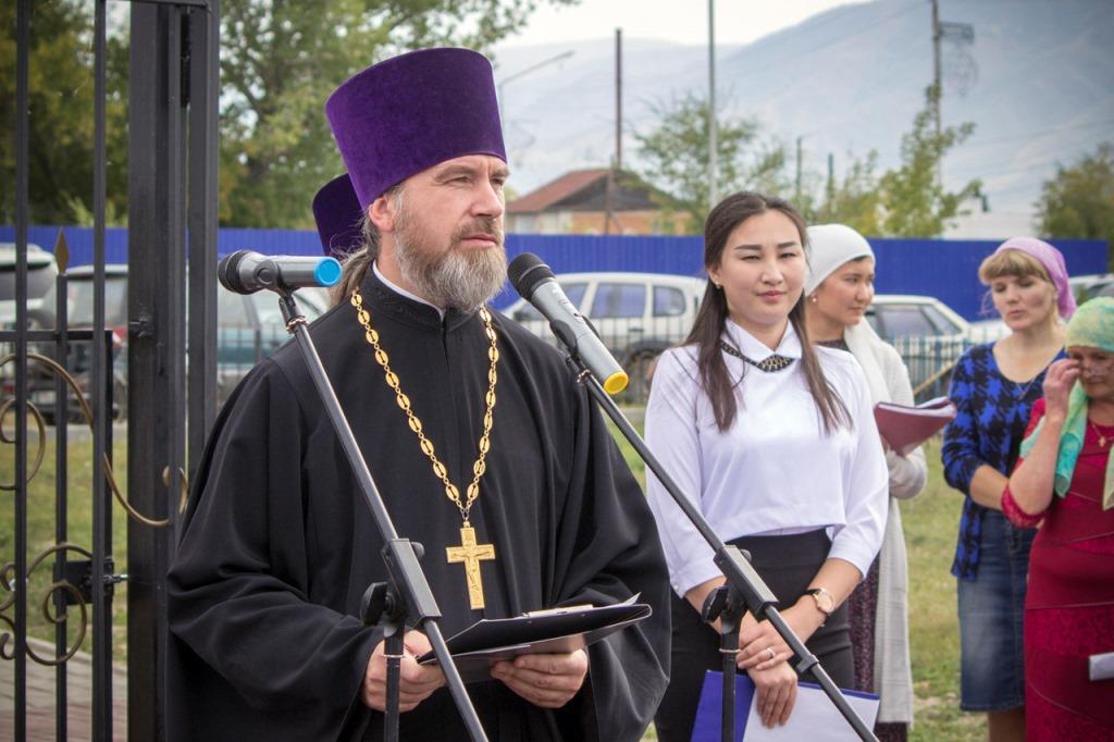 Благочинный Усть-Каменогорского церковного округа иерей Алексий Анищенко огласил приветственное слово епископа Усть-Каменогорского и Семипалатинского Амфилохия по случаю освящения часовни во имя святого равноапостольного князя Владимира в селе Улькен Нарын Катон-Карагайского района: