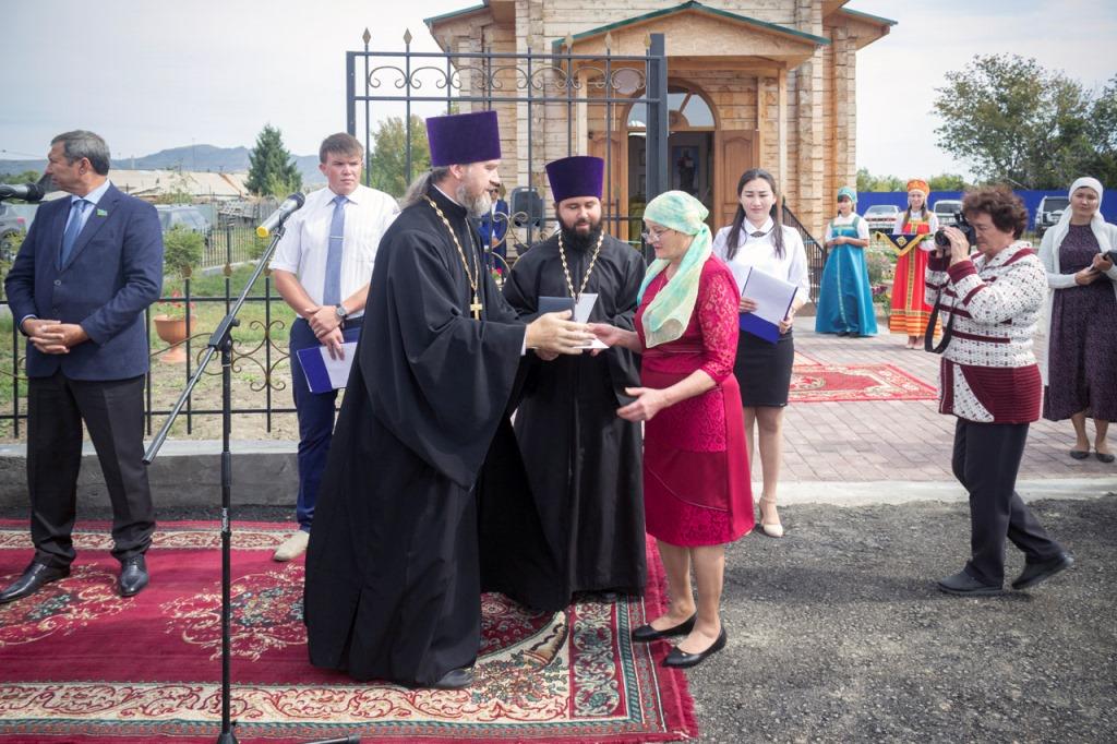 Приношу слова искренней благодарности всем благотворителям и жителям Катон-Карагайского района, внесшим свой весомый вклад в доброе дело возведения часовни. Желаю всем жителям села неуклонного стремления к святости жизни, и пусть прекрасный вид этой часовни формирует в сердцах сельчан высокие духовные и жизненные ориентиры для созидательного развития и труда, для попечения о жизни в Царствии Небесном и на благо нашего земного Отечества, нашего общего дома – Республики Казахстан.