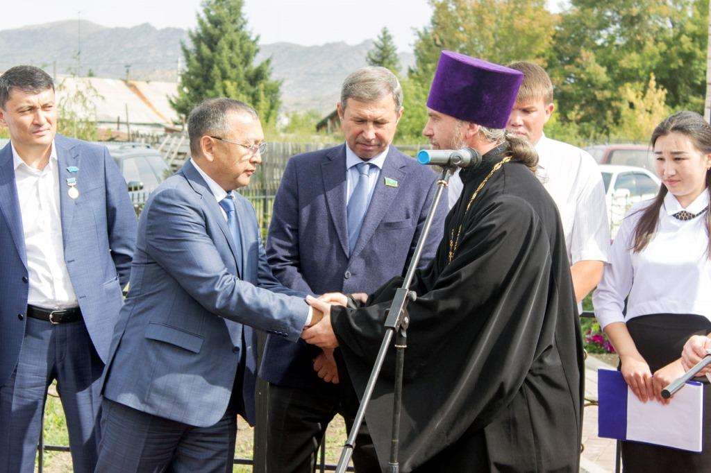 В официальной торжественной части открытия часовни выступил депутат Сената Парламента Республики Казахстан от Восточно-Казахстанской области, почетный житель Катон-Карагайского района Сергей Викторович Плотников. Сергей Викторович рассказал о развитии и умножении духовной составляющей жизни народов Казахстана.