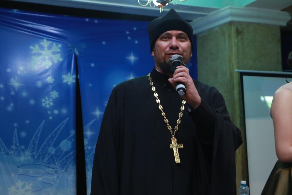 После окончания мероприятия руководитель молодежного отдела епархии иерей Вячеслав Гутов обратился к собравшимся с приветственным словом. В своем выступлении отец Вячеслав от лица Преосвященнейшего епископа Амфилохия поздравил участников бала и гостей с праздником Рождества Христова и поблагодарил администрацию города и коллектив Общественного объединения «Центр русской культуры» за активное сотрудничество в организации и проведении молодежного мероприятия.