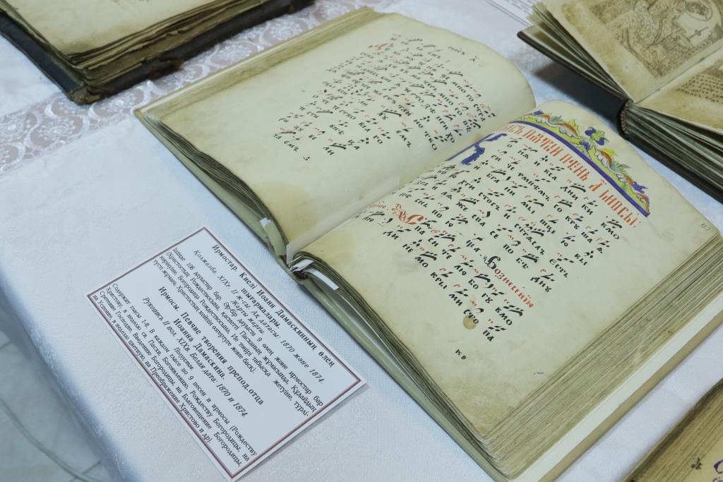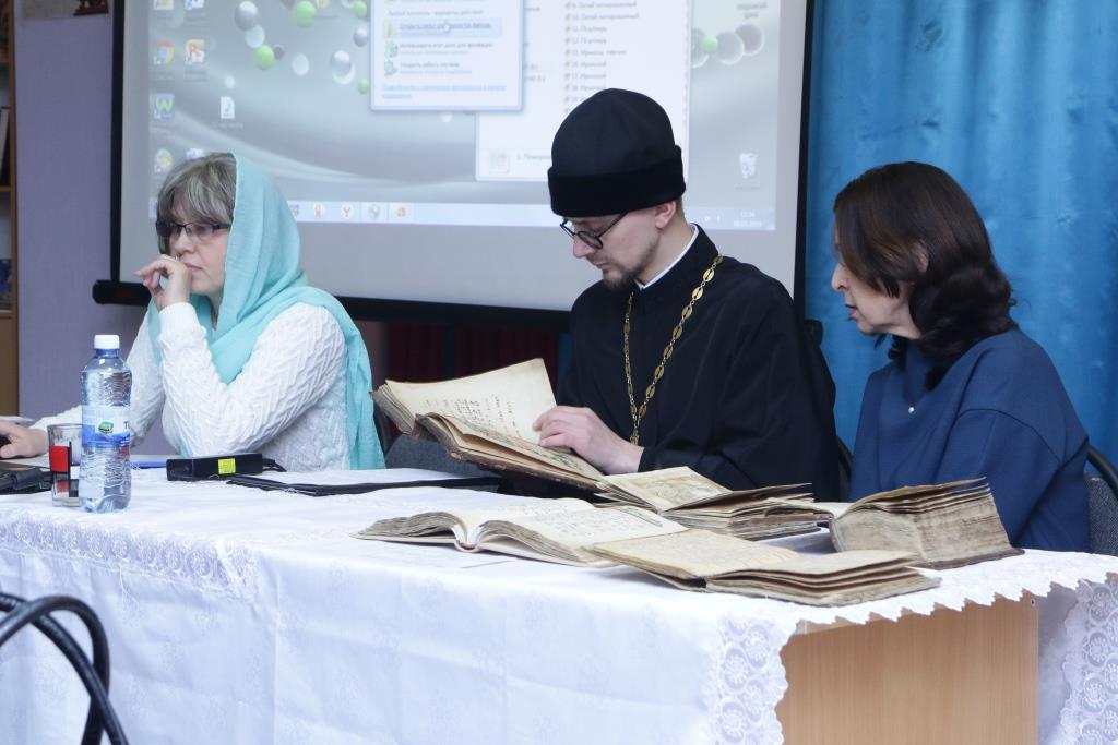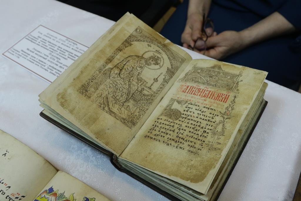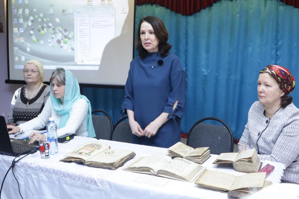 Затем старший научный сотрудник Восточно-Казахстанского областного архитектурно-этнографического и природно-ландшафтного музея-заповедника О.Н. Осерчева представила вниманию участников доклад на тему «Рукописное наследие Древней Руси в собрании Восточно-Казахстанского музея-заповедника». Собравшиеся ознакомились со старинными рукописными книгами – Псалтирью, Апостолом, Служебником и прочими книгами, имеющими огромную историческую и научную ценность.