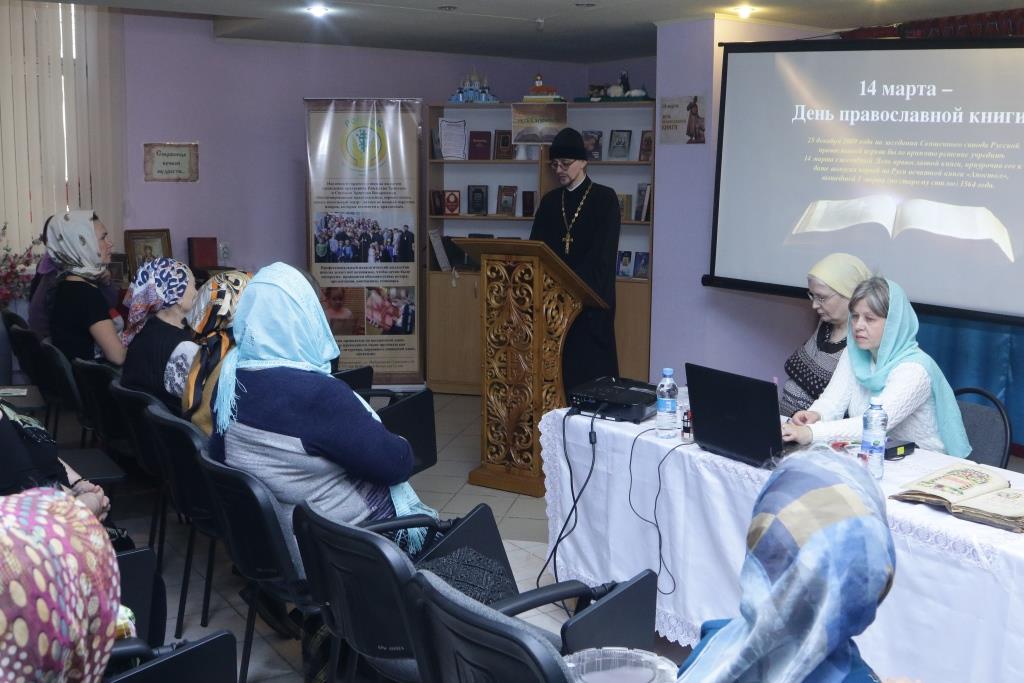 После доклада О.Н. Осерчевой состоялась презентация святоотеческой литературы «Книги, просвещающие разум. Чтение, полезное душе», которая была подготовлена преподавателями ЦВШ М.В. Колосовой и Т.П. Ноздрюхиной. Участники мероприятия ознакомились с творениями Святых отцов Православной Церкви о посте, покаянии и воспитании добродетелей.