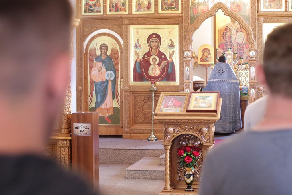 Перед отъездом участников к месту проведения молодежной встречи, в Свято-Троицком монастырском соборе руководителем молодёжного отдела епархии иереем Вячеславом Гутовым была совершена Божественная Литургия, за которой молились и причащались Святых Христовых Таин участники съезда. Песнопения Божественной Литургии исполнял молодежный хор под управлением Л. Т. Зайцевой.