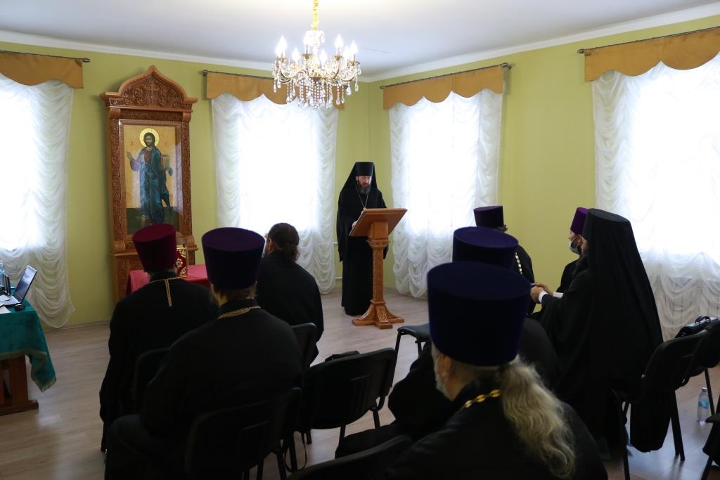Участники собрания молитвенно помянули скончавшихся в 2021 году старейших клириков епархии – духовника епархии архимандрита Спиридона (Теплухина) и благочинного Семипалатинского церковного округа митрофорного протоиерея Феодора Проскурина.
