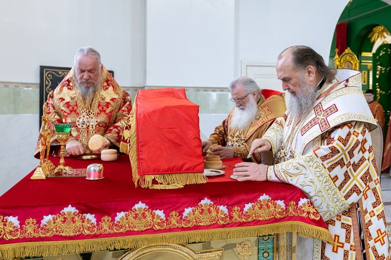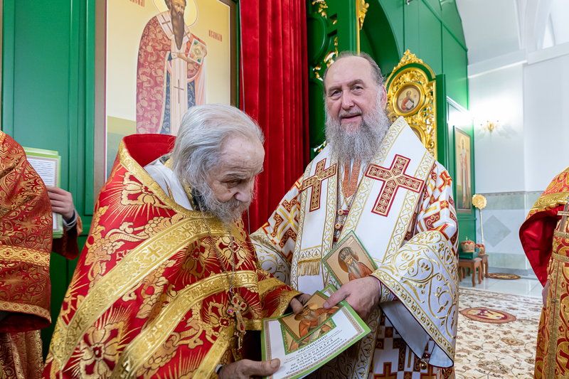 Главам Митрополичьих округов за Божественной Литургией сослужили: архиепископ Карагандинский и Шахтинский Севастиан, архиепископ Усть-Каменогорский и Семипалатинский Амфилохий, архиепископ Кокшетауский и Акмолинский Серапион, архиепископ Петропавловский и Булаевский Владимир, управляющий делами Православной Церкви Казахстана епископ Каскеленский Геннадий, епископ Актюбинский и Кызылординский Игнатий, викарий Астанайской епархии епископ Талдыкорганский Клавдиан, епископ Чимкентский и Туркестанский Хрисанф; духовное чадо и ученик преподобного старца Севастиана – духовник Богородице-Рождественского монастыря архимандрит Петр (Горошко); благочинный приходов Алма-Аты протоиерей Валерий Захаров, благочинный приходов Астаны архимандрит Сергий (Карамышев); духовенство, прибывшее с гостями-архипастырями; клирики Карагандинской епархии.