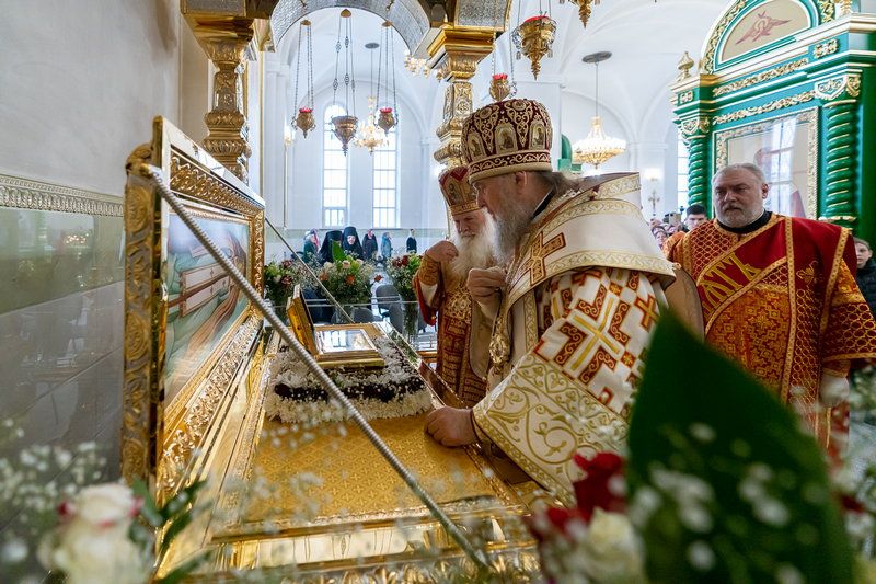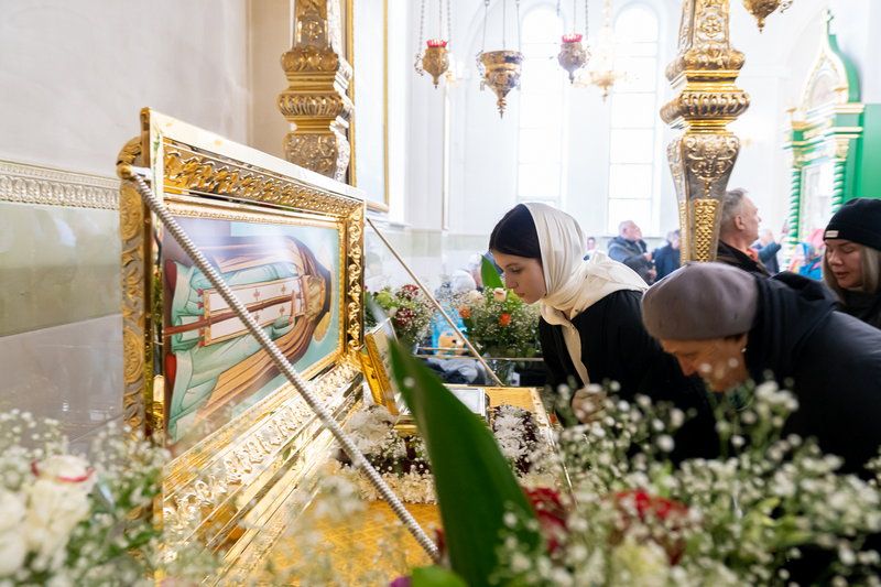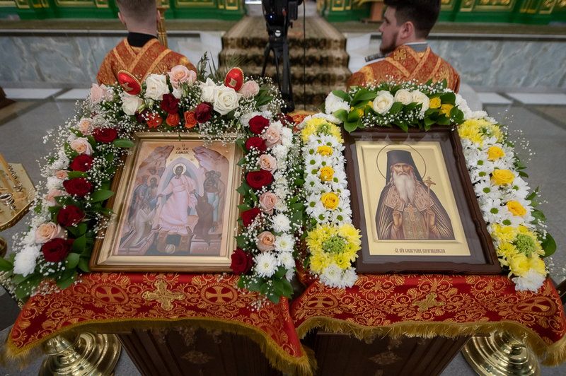 На праздничную Литургию в собор был доставлен ковчег с частью камня от Гроба Господня. Святыню по просьбе митрополита Александра в дар для православных казахстанцев передал хранитель ключей храма Гроба Господня в Иерусалиме шейх Ваджих Нусейбе, с благословения Блаженнейшего Патриарха Иерусалимского Феофила III.
