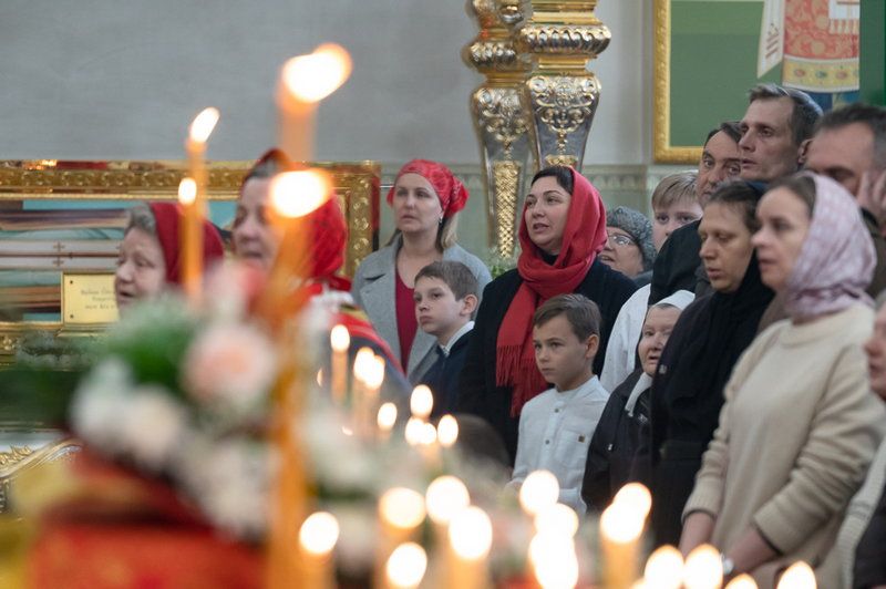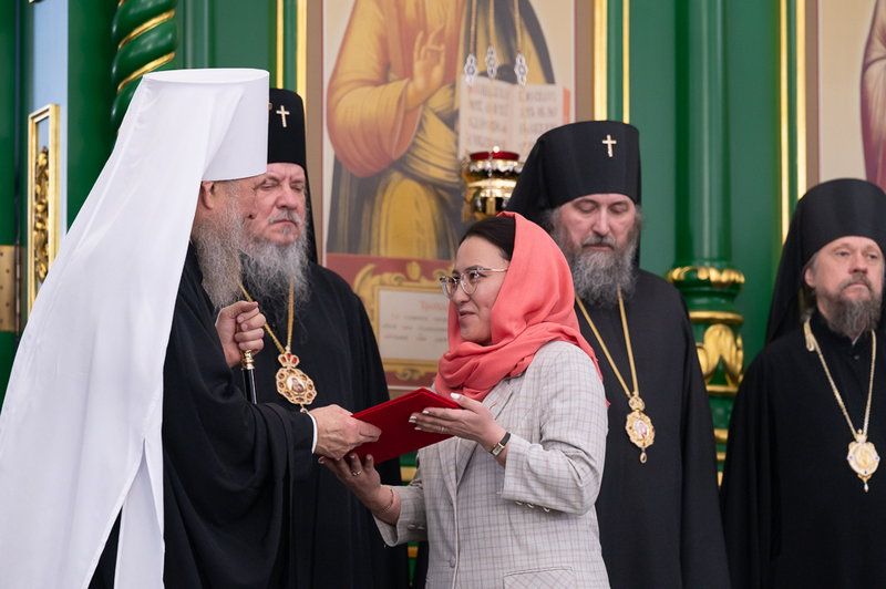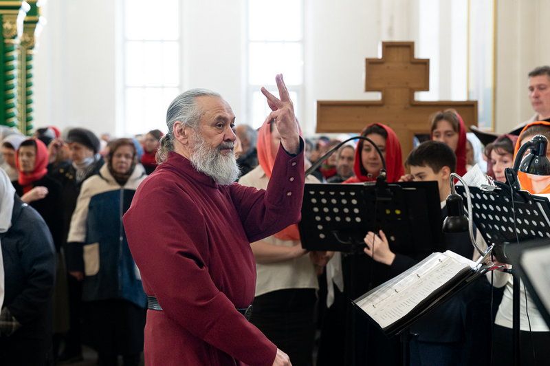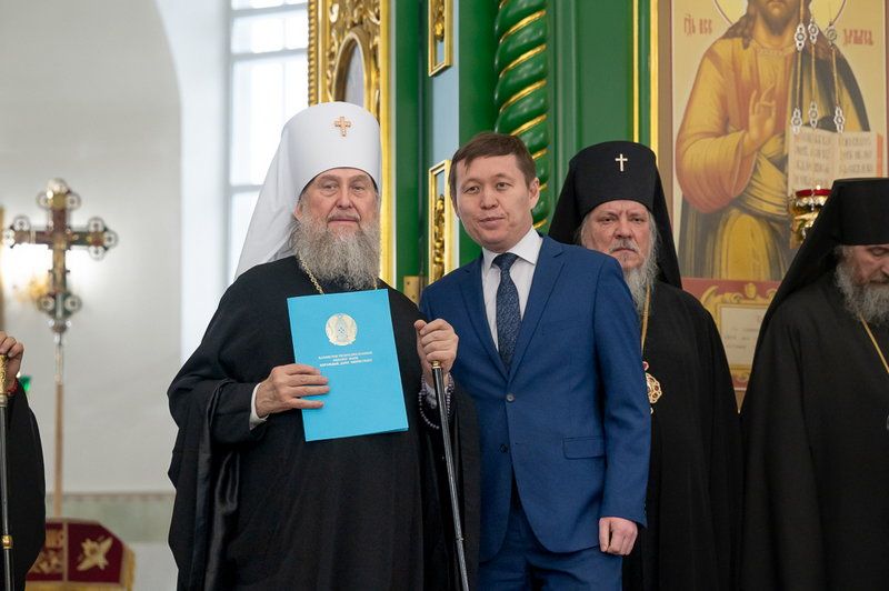 За богослужением пел архиерейский хор Карагандинской епархии под управлением В. Тесленко и сводный хор казахстанского духовенства.