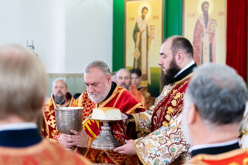 По запричастном стихе протоиерей Димитрий Байдек огласил послание митрополита Астанайского и Казахстанского Александра по случаю 25-летия обретения мощей преподобного Севастиана Карагандинского.