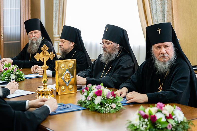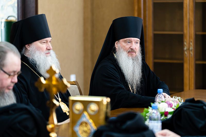 На заседании Синода присутствовал прибывший в Караганду на празднование 25-летия обретения мощей преподобного Севастиана Карагандинского Глава Среднеазиатского Митрополичьего округа митрополит Ташкентский и Узбекистанский Викентий.