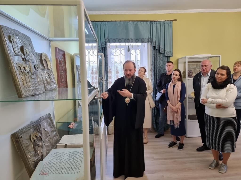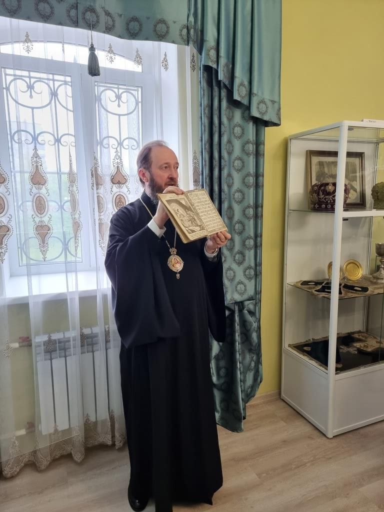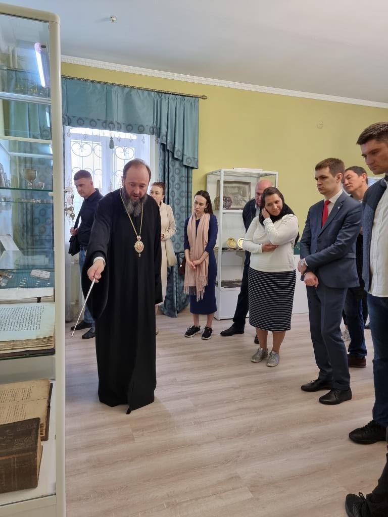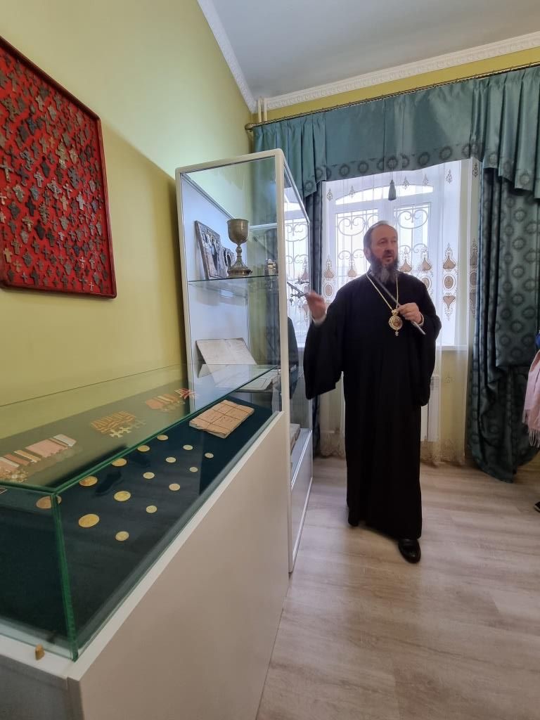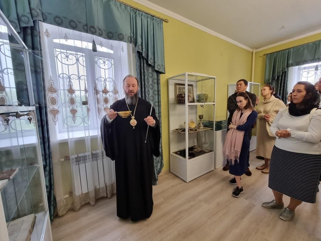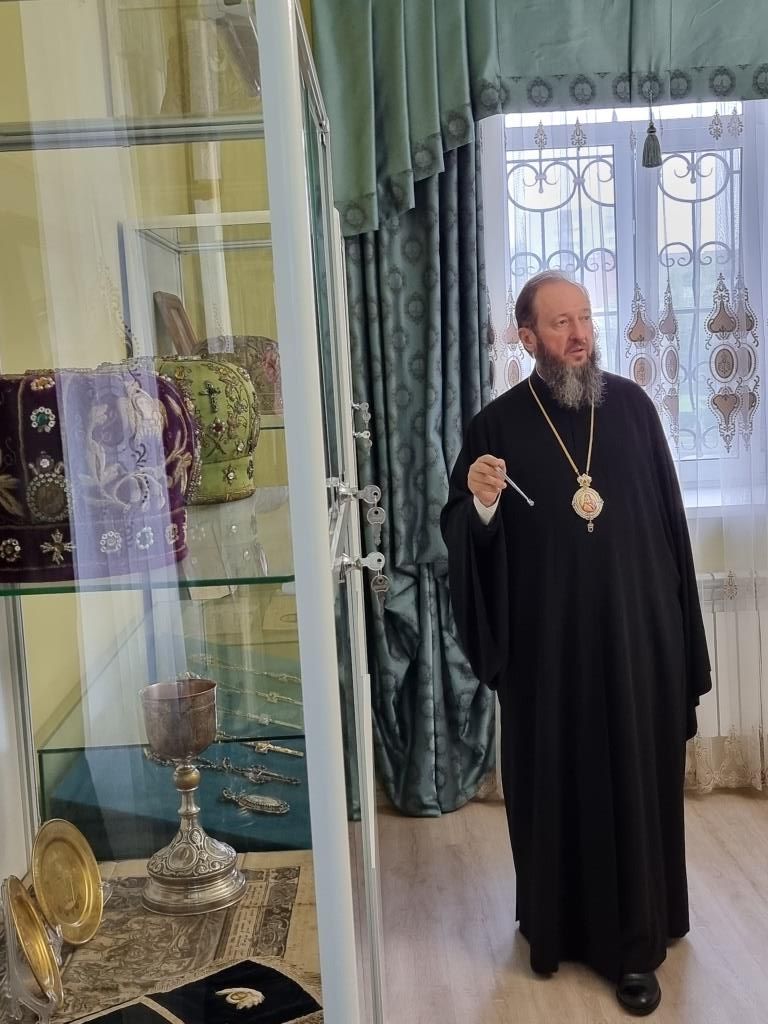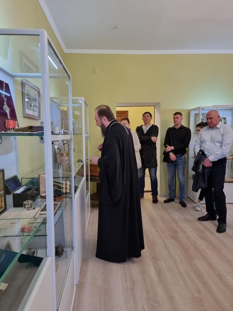 По предложению Владыки Амфилохия гости посетили епархиальный музей, расположенный в здании Духовно-административного корпуса, где архиепископ Амфилохий рассказал дипломатам об истории становления и развития православных общин на территории Рудном Алтае. Гости ознакомились с экспозицией музея, выразив живой интерес к экспонатам и летописи церковной жизни Восточного Казахстана.