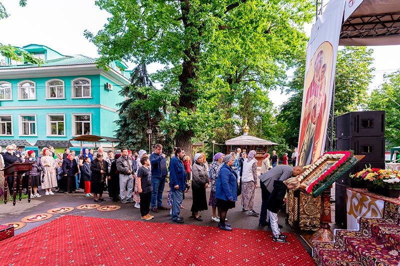 За Литургией молились: настоятельница Иверско-Серафимовского женского монастыря игумения Любовь (Якушкина) с сестрами обители; президент общественного фонда «Апостол» Г.Г. Сосновский; сотрудники отделов и комиссий Митрополичьего округа; сотрудники Алма-Атинского епархиального управления; студенты Алма-Атинской духовной семинарии; казачество; прихожане алма-атинских храмов и многочисленные паломники.