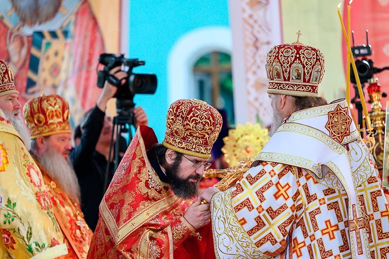 Глава Казахстанского Митрополичьего округа сослужили архипастыри Православной Церкви Казахстана: архиепископ Павлодарский и Экибастузский Варнава, архиепископ Карагандинский и Шахтинский Севастиан, архиепископ Усть-Каменогорский и Семипалатинский Амфилохий, архиепископ Кокшетауский и Акмолинский Серапион, архиепископ Петропавловский и Булаевский Владимир, управляющий делами Казахстанского Митрополичьего округа епископ Каскеленский Геннадий, епископ Актюбинский и Кызылординский Игнатий, викарий Астанайской епархии епископ Талдыкорганский Клавдиан, епископ Чимкентский и Туркестанский Хрисанф; викарий Астанайской епархии епископ Талгарский Вениамин.